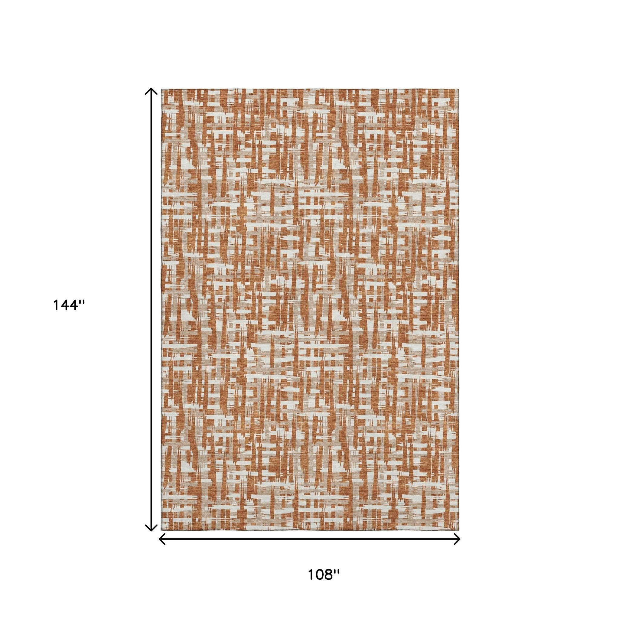 Add some artistry to your room with this 9-foot x 12-foot terra cotta ivory and beige abstract geometric washable area rug with uv protection. Ideal for spaces with kids and pets, this rug is stain resistant to help repel dirt and spilled liquids. Built to last, this rug crafted from polyester fibers is known for its durability and long lasting appeal. Rugs are a great way to showcase your style, hide imperfections, warm your home and reduce noise. This larger sized, transitional styled rug is ready to create a focal point or statement piece in your room. 108.00-inch h x 144.00-inch w x 0.39-inch d.