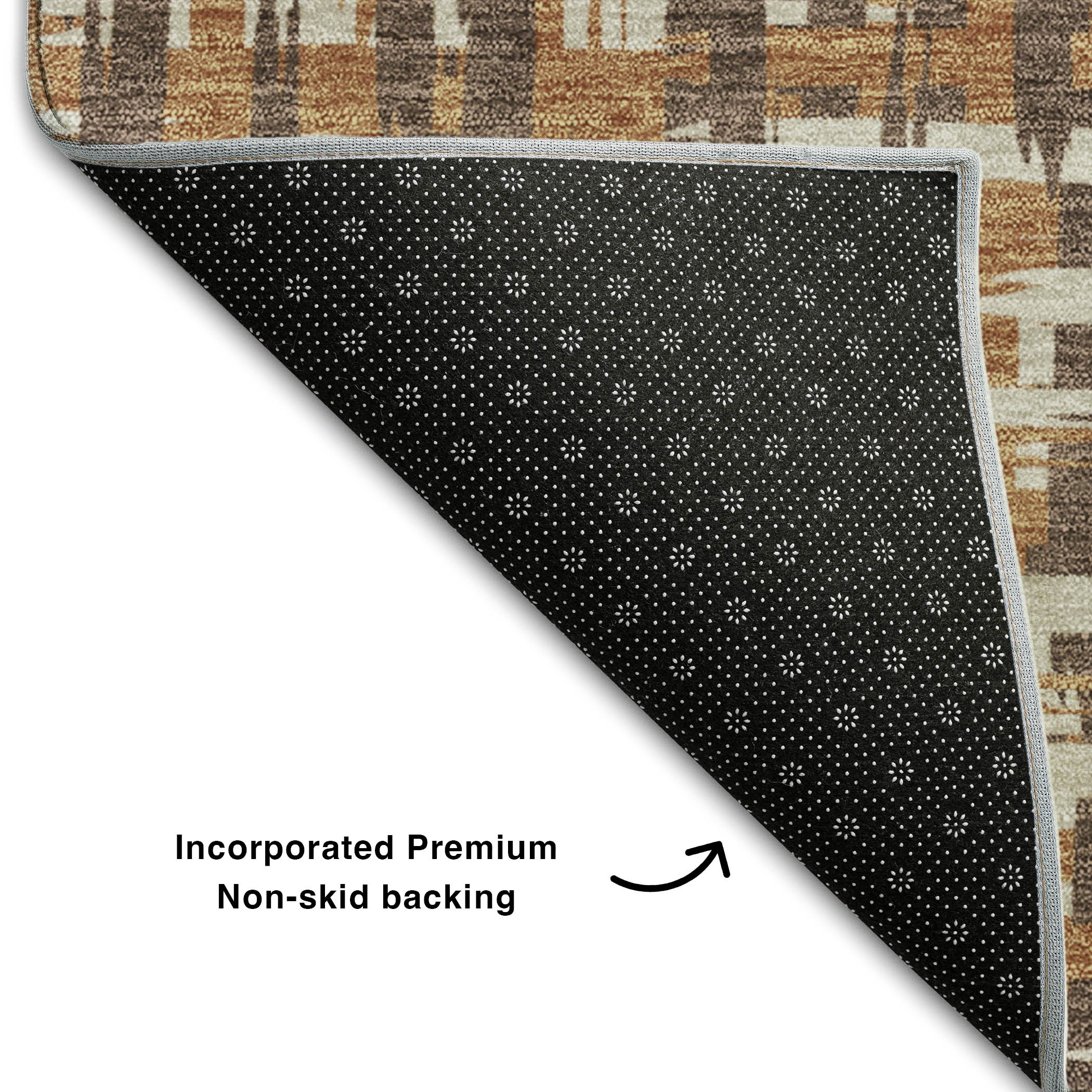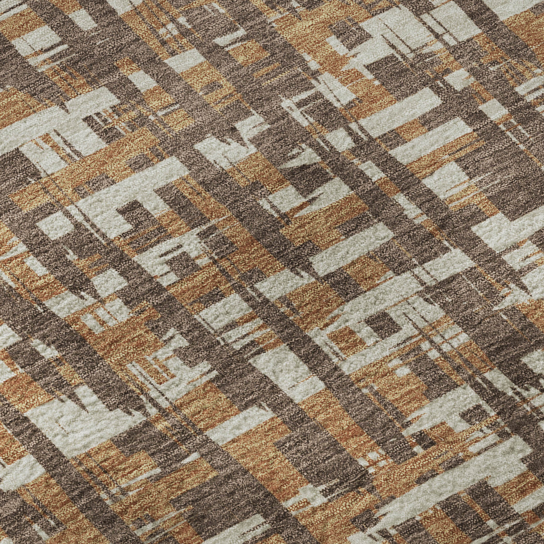Add great coloration and comfortable texture to your space with this 8-foot x 10-foot chocolate ivory and copper abstract geometric washable area rug with uv protection. Ideal for spaces with kids and pets, this rug is stain resistant to help repel dirt and spilled liquids. Built to last, this rug crafted from polyester fibers is known for its durability and long lasting appeal. Rugs are a great way to showcase your style, hide imperfections, warm your home and reduce noise. This larger sized, transitional styled rug is ready to create a focal point or statement piece in your room. 96.00-inch h x 120.00-inch w x 0.39-inch d.