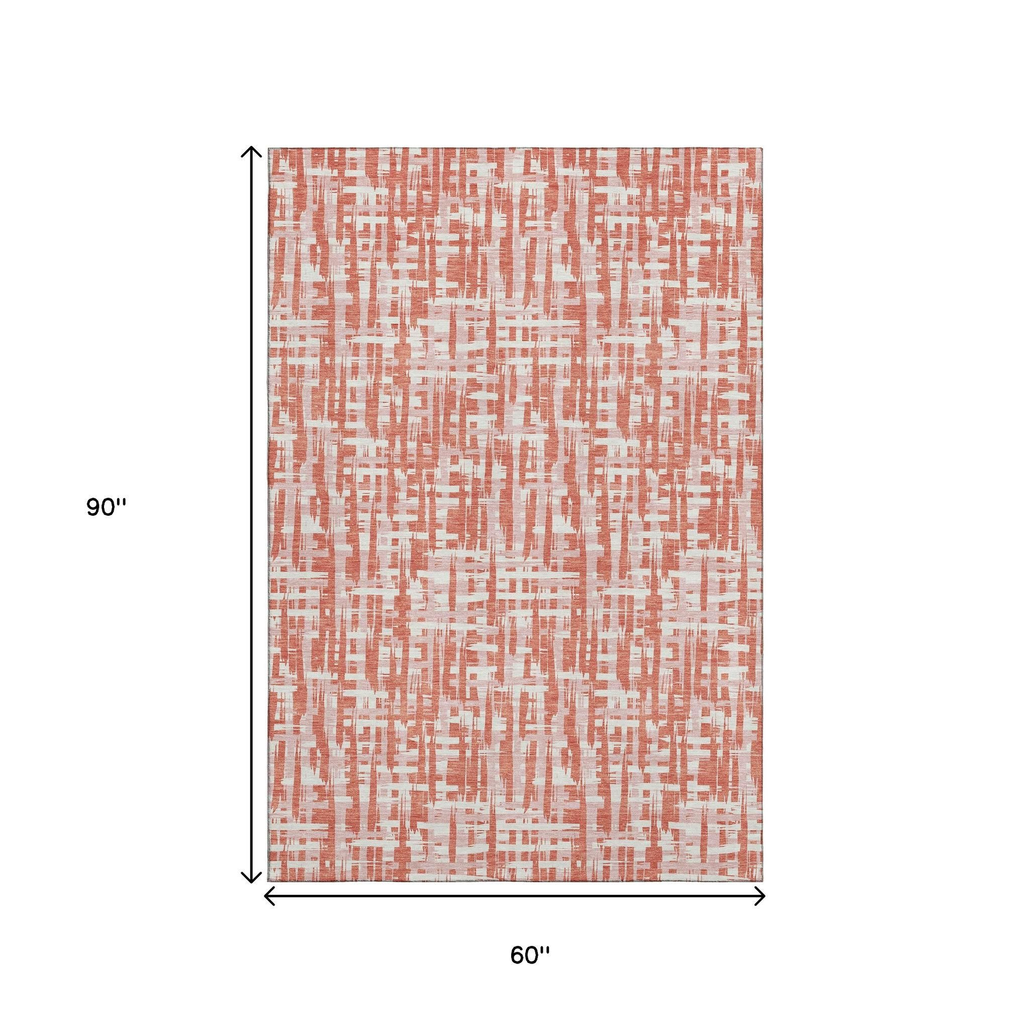 Add great coloration and comfortable texture to your space with this 5-foot x 8-foot coral ivory and blush abstract geometric washable area rug with uv protection. Ideal for spaces with kids and pets, this rug is stain resistant to help repel dirt and spilled liquids. Built to last, this rug crafted from polyester fibers is known for its durability and long lasting appeal. Rugs are a great way to showcase your style, hide imperfections, warm your home and reduce noise. This larger sized, transitional styled rug is ready to create a focal point or statement piece in your room. 60.00-inch h x 90.00-inch w x 0.39-inch d.