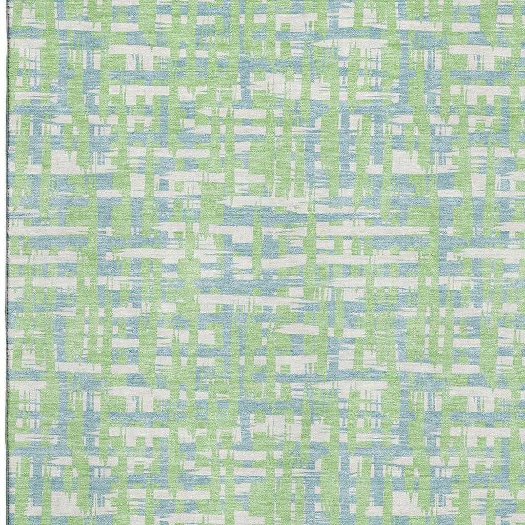 Set an inviting tone in your space with this 5-foot x 8-foot mint green ivory and sky blue abstract geometric washable area rug with uv protection. Ideal for spaces with kids and pets, this rug is stain resistant to help repel dirt and spilled liquids. Built to last, this rug crafted from polyester fibers is known for its durability and long lasting appeal. Rugs are a great way to showcase your style, hide imperfections, warm your home and reduce noise. This larger sized, transitional styled rug is ready to create a focal point or statement piece in your room. 60.00-inch h x 90.00-inch w x 0.39-inch d.