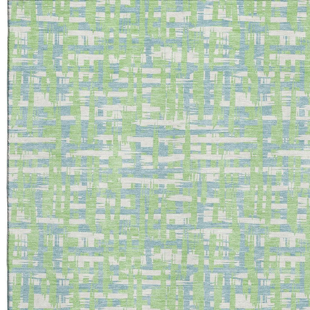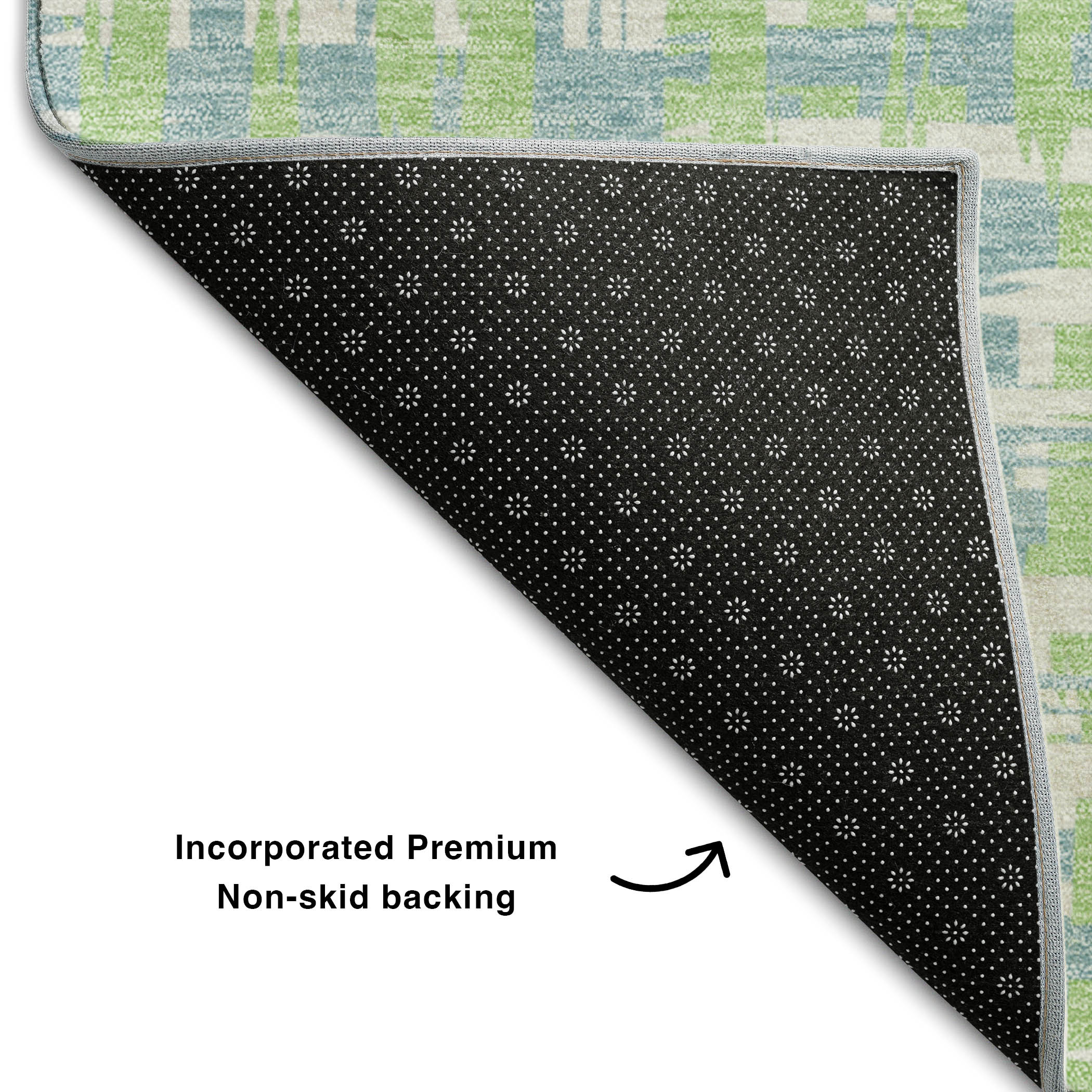 Set an inviting tone in your space with this 9-foot x 12-foot mint green ivory and sky blue abstract geometric washable area rug with uv protection. Ideal for spaces with kids and pets, this rug is stain resistant to help repel dirt and spilled liquids. Built to last, this rug crafted from polyester fibers is known for its durability and long lasting appeal. Rugs are a great way to showcase your style, hide imperfections, warm your home and reduce noise. This larger sized, transitional styled rug is ready to create a focal point or statement piece in your room. 108.00-inch h x 144.00-inch w x 0.39-inch d.