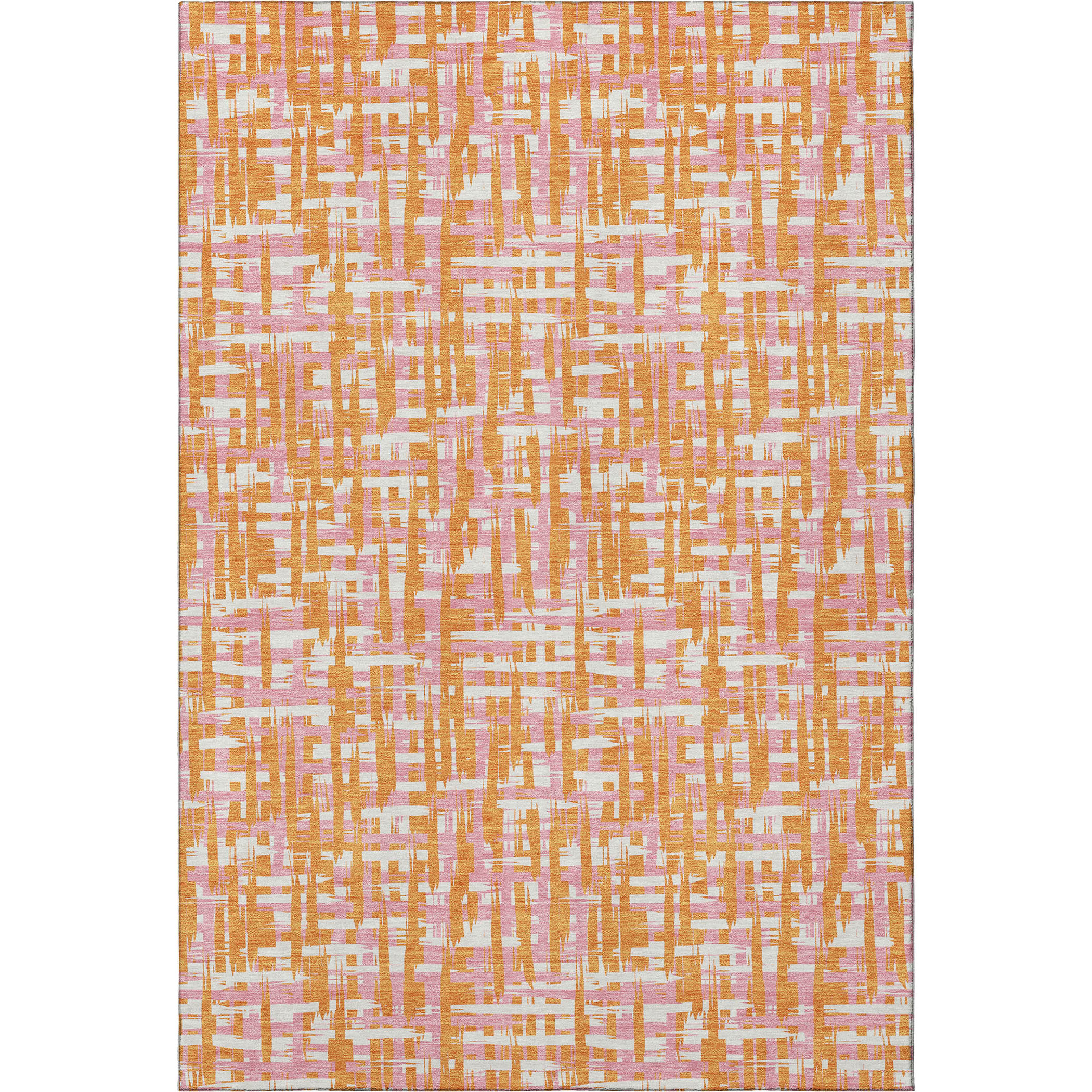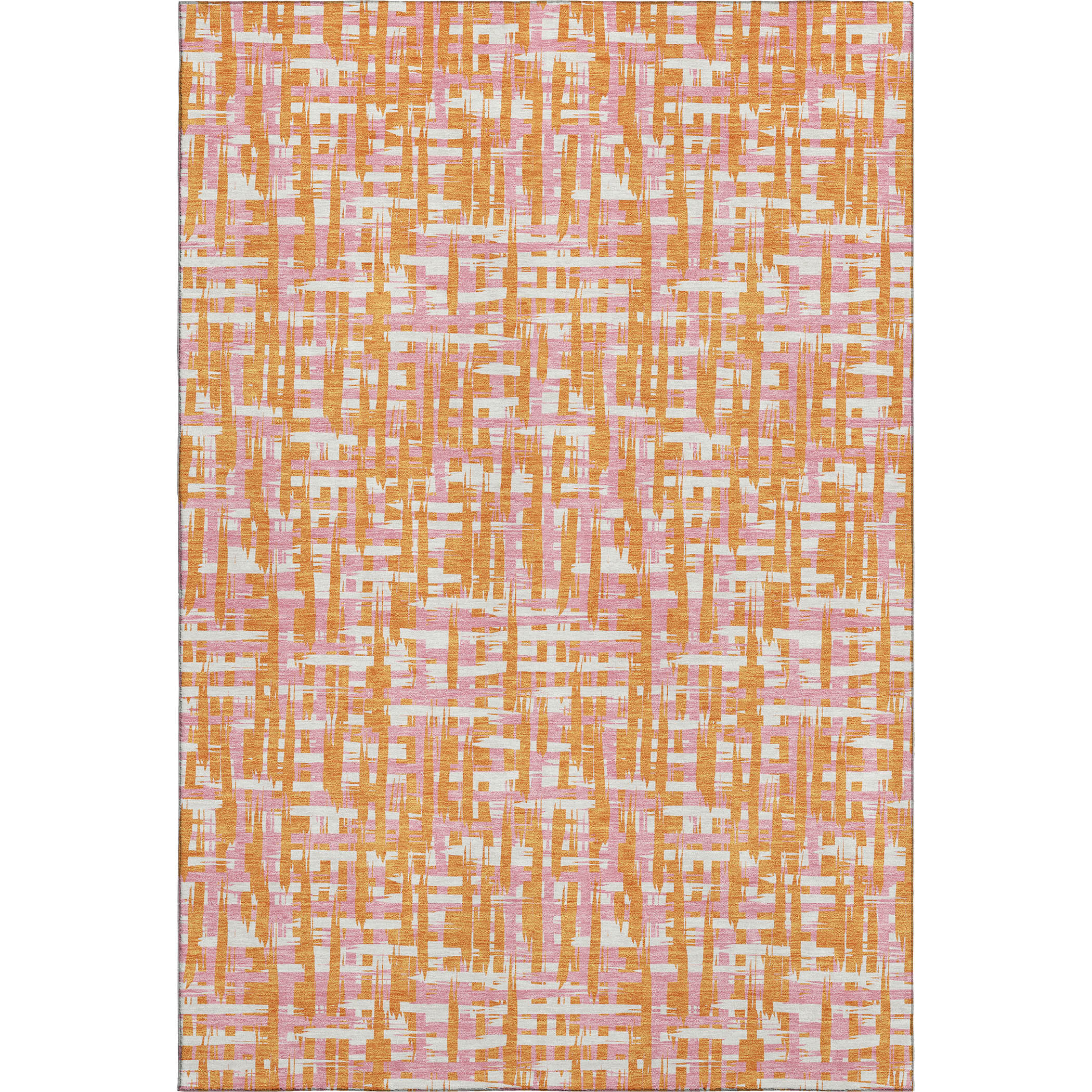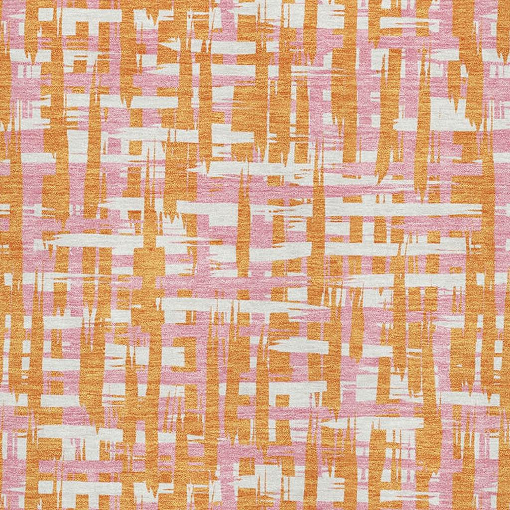 This 5-foot x 8-foot orange ivory and pink abstract geometric washable area rug with uv protection, is a great way to add warmth to a room. Ideal for spaces with kids and pets, this rug is stain resistant to help repel dirt and spilled liquids. Built to last, this rug crafted from polyester fibers is known for its durability and long lasting appeal. Rugs are a great way to showcase your style, hide imperfections, warm your home and reduce noise. This larger sized, transitional styled rug is ready to create a focal point or statement piece in your room. 60.00-inch h x 90.00-inch w x 0.39-inch d.