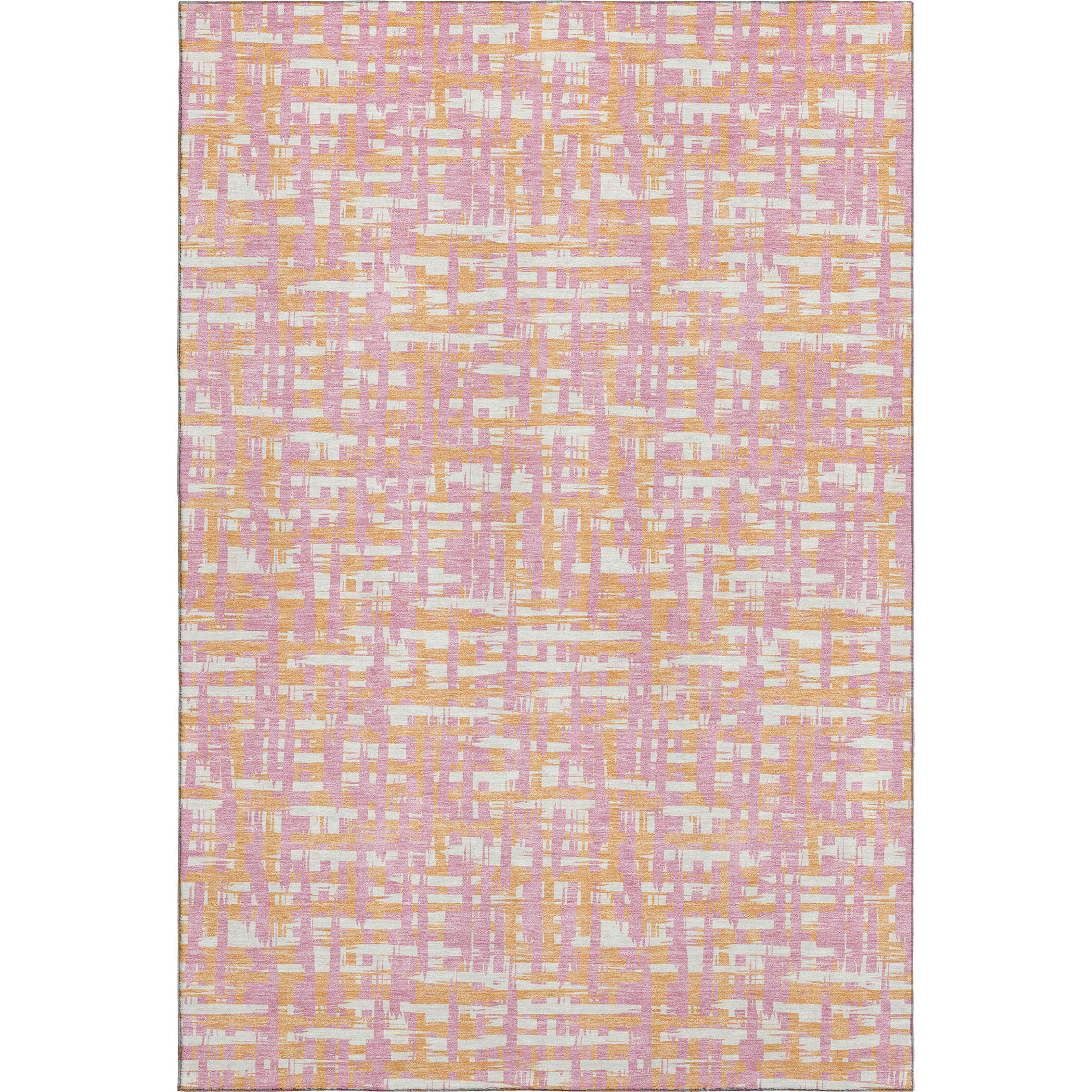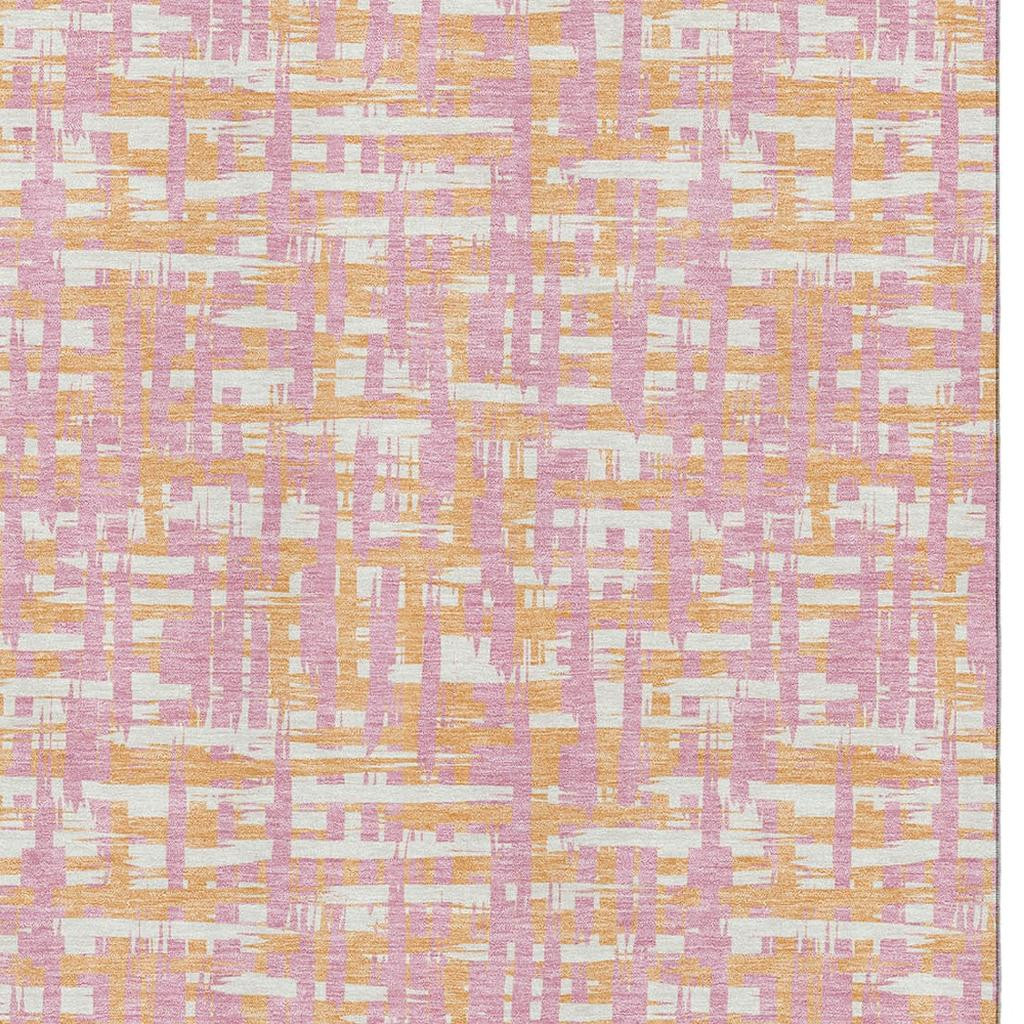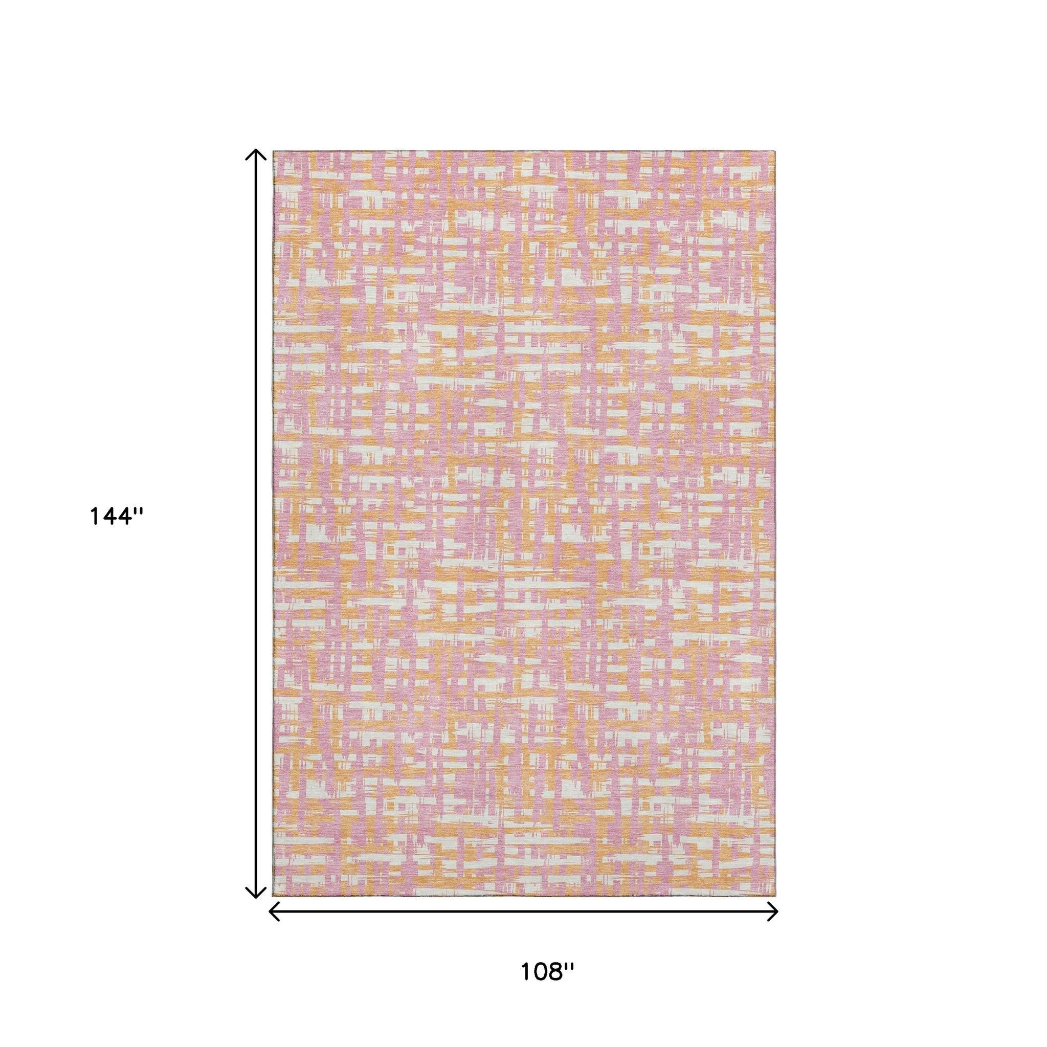 Add some artistry to your room with this 9-foot x 12-foot pink ivory and orange abstract geometric washable area rug with uv protection. Ideal for spaces with kids and pets, this rug is stain resistant to help repel dirt and spilled liquids. Built to last, this rug crafted from polyester fibers is known for its durability and long lasting appeal. Rugs are a great way to showcase your style, hide imperfections, warm your home and reduce noise. This larger sized, transitional styled rug is ready to create a focal point or statement piece in your room. 108.00-inch h x 144.00-inch w x 0.39-inch d.