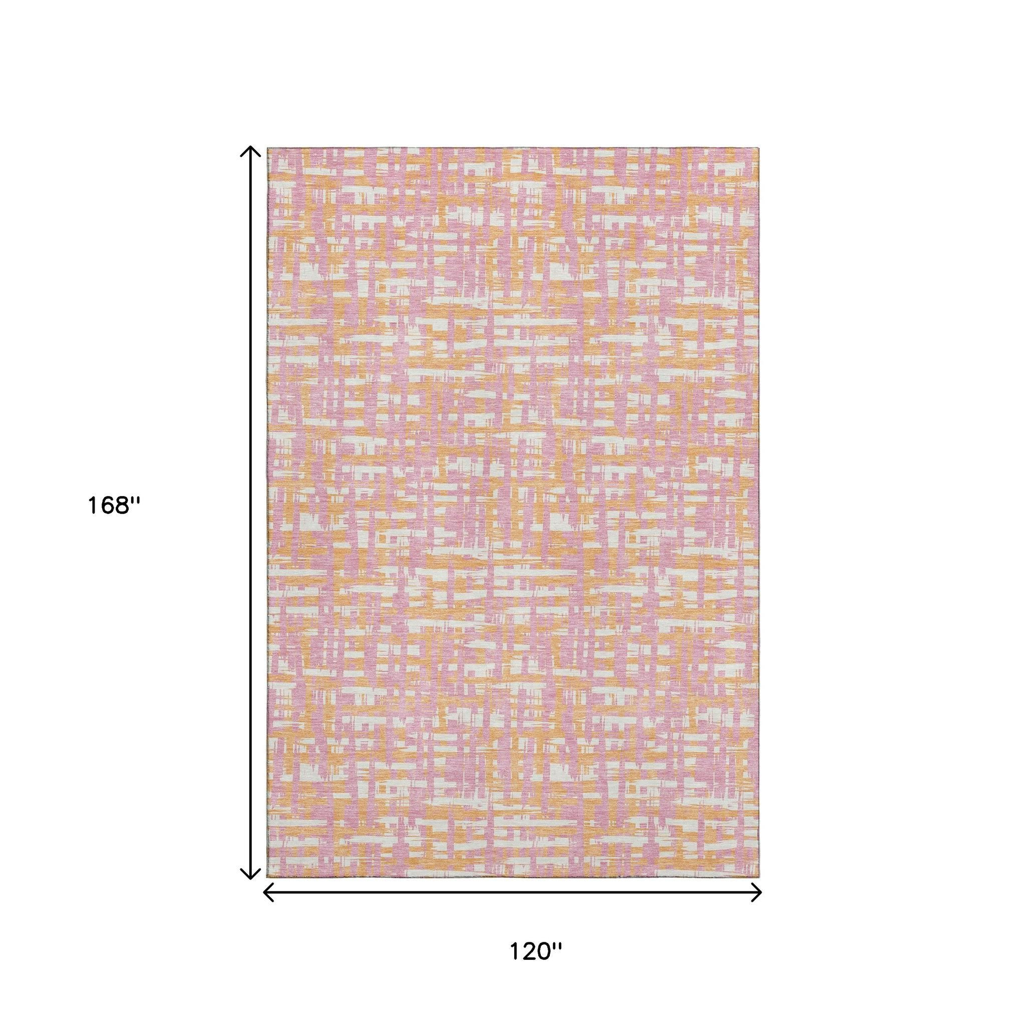 Set an inviting tone in your space with this 10-foot x 14-foot pink ivory and orange abstract geometric washable area rug with uv protection. Ideal for spaces with kids and pets, this rug is stain resistant to help repel dirt and spilled liquids. Built to last, this rug crafted from polyester fibers is known for its durability and long lasting appeal. Rugs are a great way to showcase your style, hide imperfections, warm your home and reduce noise. This larger sized, transitional styled rug is ready to create a focal point or statement piece in your room. 120.00-inch h x 168.00-inch w x 0.39-inch d.