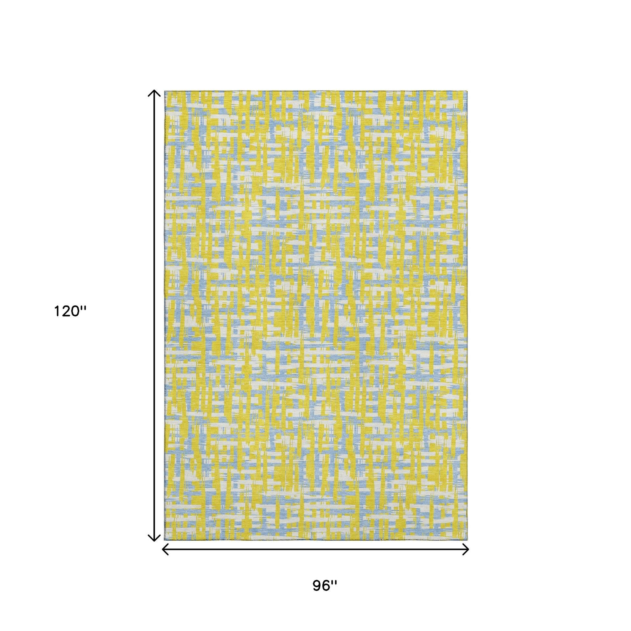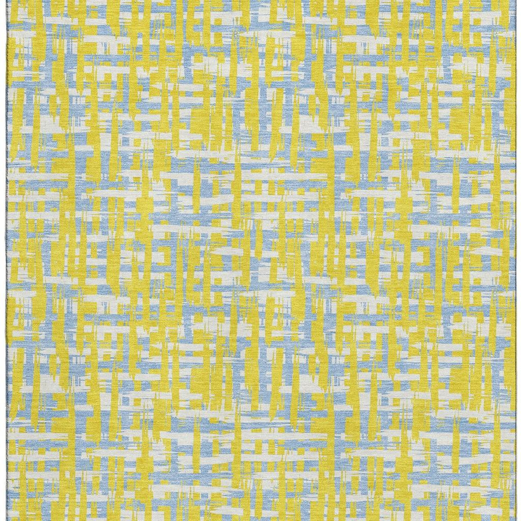 Add some artistry to your room with this 8-foot x 10-foot yellow ivory and denim blue abstract geometric washable area rug with uv protection. Ideal for spaces with kids and pets, this rug is stain resistant to help repel dirt and spilled liquids. Built to last, this rug crafted from polyester fibers is known for its durability and long lasting appeal. Rugs are a great way to showcase your style, hide imperfections, warm your home and reduce noise. This larger sized, transitional styled rug is ready to create a focal point or statement piece in your room. 96.00-inch h x 120.00-inch w x 0.39-inch d.