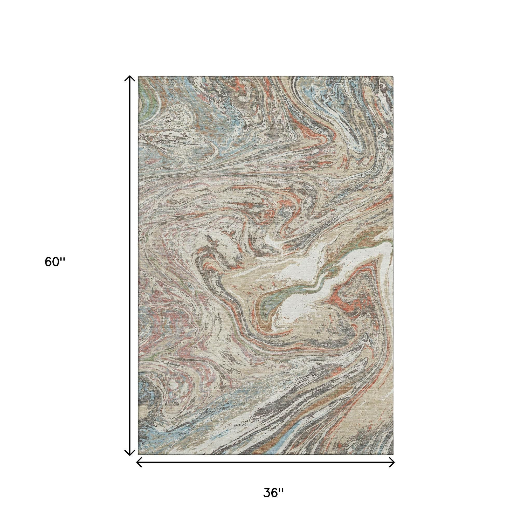 Add some artistry to your room with this 3-foot x 5-foot beige copper and green abstract washable area rug with uv protection. Ideal for spaces with kids and pets, this rug is stain resistant to help repel dirt and spilled liquids. Built to last, this rug crafted from polyester fibers is known for its durability and long lasting appeal. Rugs are a great way to showcase your style, hide imperfections, warm your home and reduce noise. This smaller sized, transitional styled rug is just what you need for your walkway, bedside, in front of door, cabinet, refrigerator, or chair. 36.00-inch h x 60.00-inch w x 0.39-inch d.