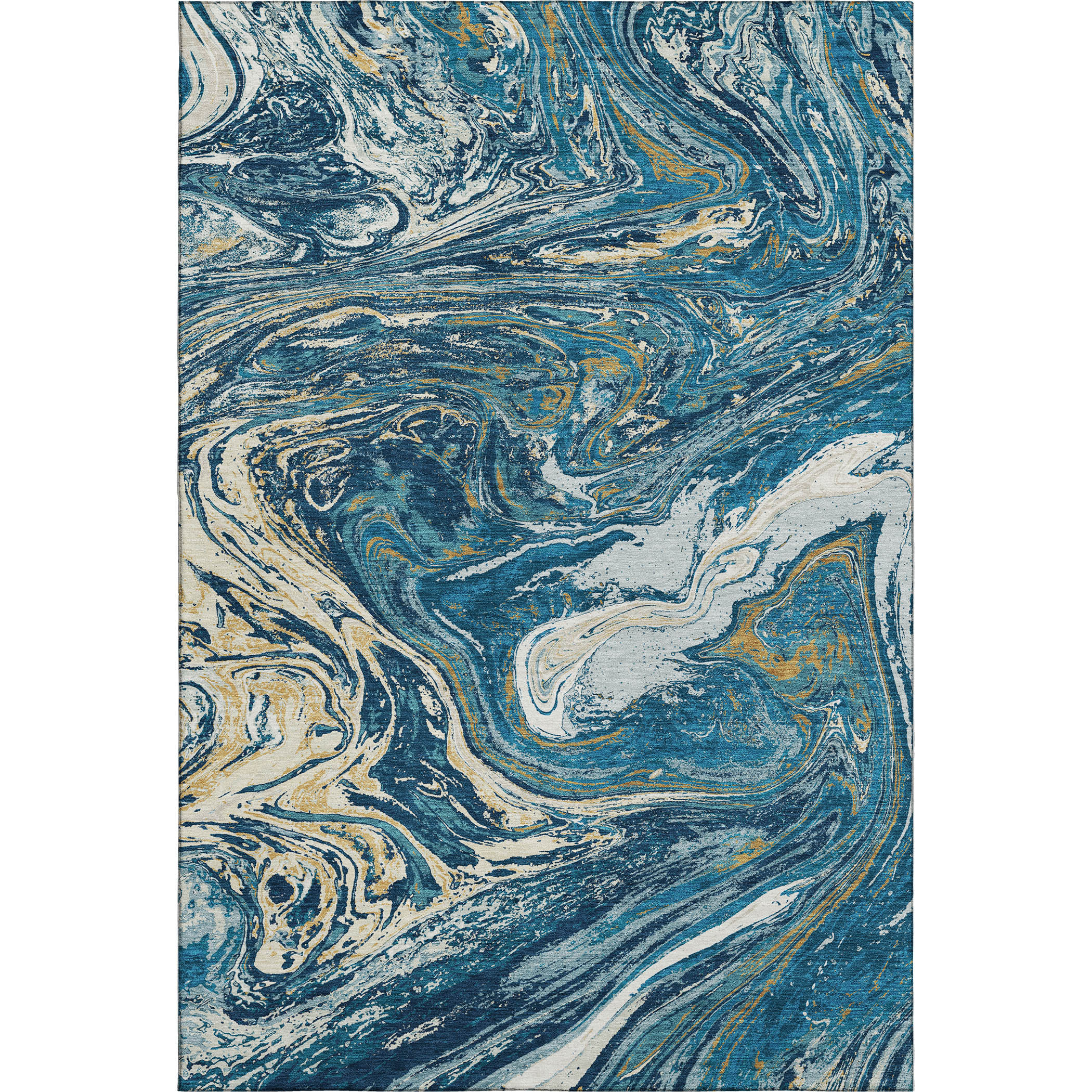 Set an inviting tone in your space with this 5-foot x 8-foot navy blue gold and white abstract washable area rug with uv protection. Ideal for spaces with kids and pets, this rug is stain resistant to help repel dirt and spilled liquids. Built to last, this rug crafted from polyester fibers is known for its durability and long lasting appeal. Rugs are a great way to showcase your style, hide imperfections, warm your home and reduce noise. This larger sized, transitional styled rug is ready to create a focal point or statement piece in your room. 60.00-inch h x 90.00-inch w x 0.39-inch d.