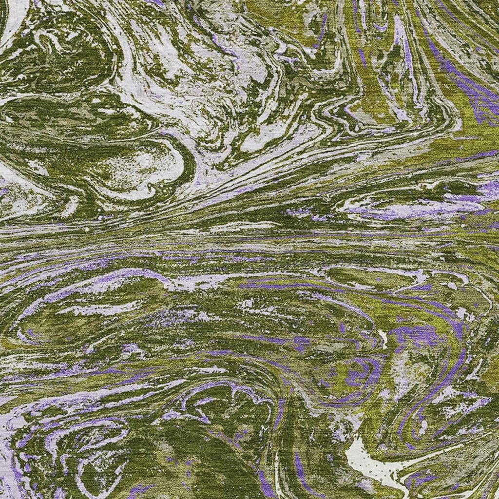 This 3-foot x 5-foot olive green purple and ivory abstract washable area rug with uv protection, is a great way to add warmth to a room. Ideal for spaces with kids and pets, this rug is stain resistant to help repel dirt and spilled liquids. Built to last, this rug crafted from polyester fibers is known for its durability and long lasting appeal. Rugs are a great way to showcase your style, hide imperfections, warm your home and reduce noise. This smaller sized, transitional styled rug is just what you need for your walkway, bedside, in front of door, cabinet, refrigerator, or chair. 36.00-inch h x 60.00-inch w x 0.39-inch d.