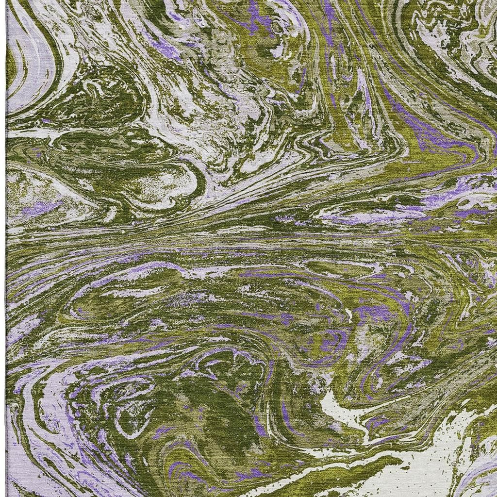 Add great coloration and comfortable texture to your space with this 8-foot x 10-foot olive green purple and ivory abstract washable area rug with uv protection. Ideal for spaces with kids and pets, this rug is stain resistant to help repel dirt and spilled liquids. Built to last, this rug crafted from polyester fibers is known for its durability and long lasting appeal. Rugs are a great way to showcase your style, hide imperfections, warm your home and reduce noise. This larger sized, transitional styled rug is ready to create a focal point or statement piece in your room. 96.00-inch h x 120.00-inch w x 0.39-inch d.