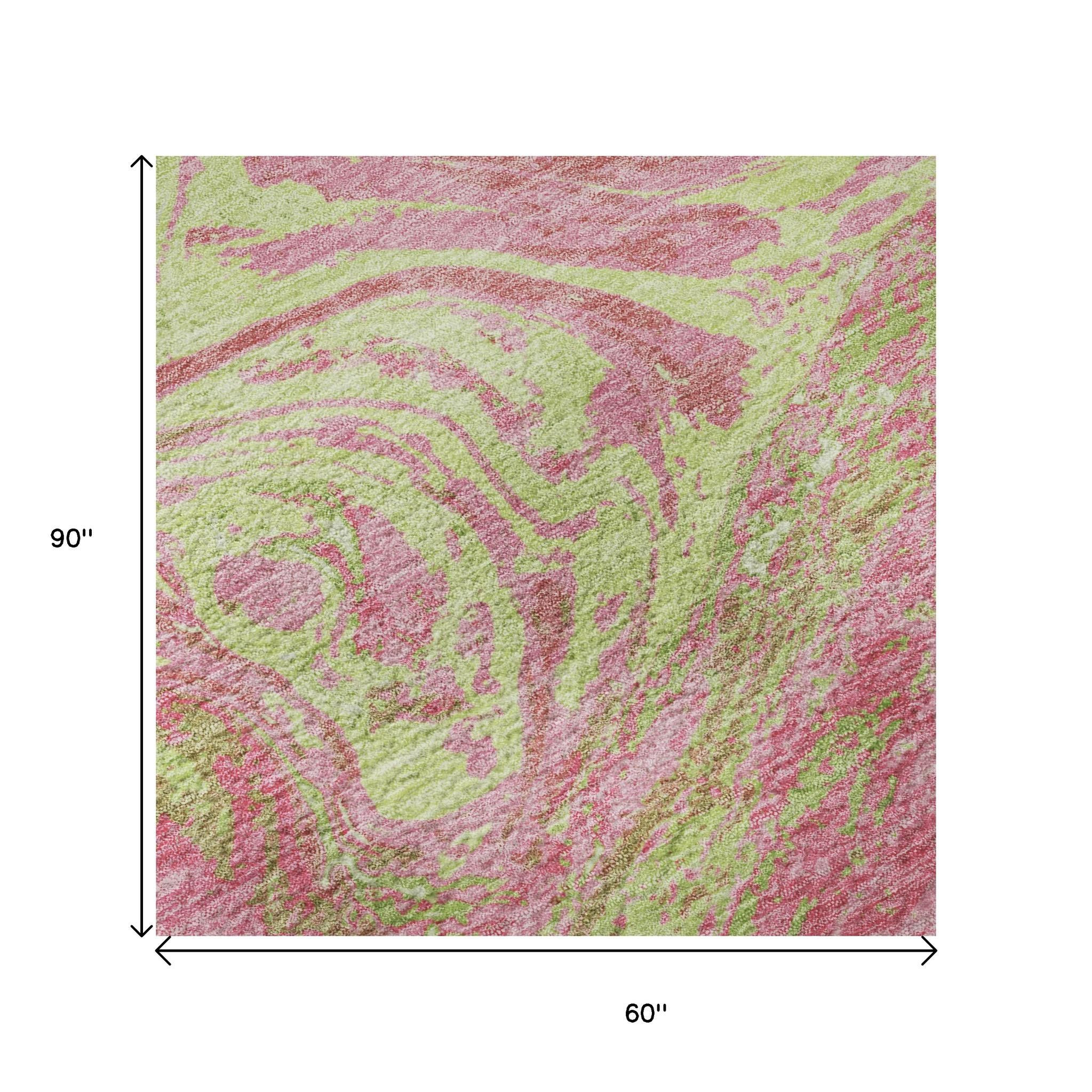Add some artistry to your room with this 5-foot x 8-foot pink artichoke green and ivory abstract washable area rug with uv protection. Ideal for spaces with kids and pets, this rug is stain resistant to help repel dirt and spilled liquids. Built to last, this rug crafted from polyester fibers is known for its durability and long lasting appeal. Rugs are a great way to showcase your style, hide imperfections, warm your home and reduce noise. This larger sized, transitional styled rug is ready to create a focal point or statement piece in your room. 60.00-inch h x 90.00-inch w x 0.39-inch d.
