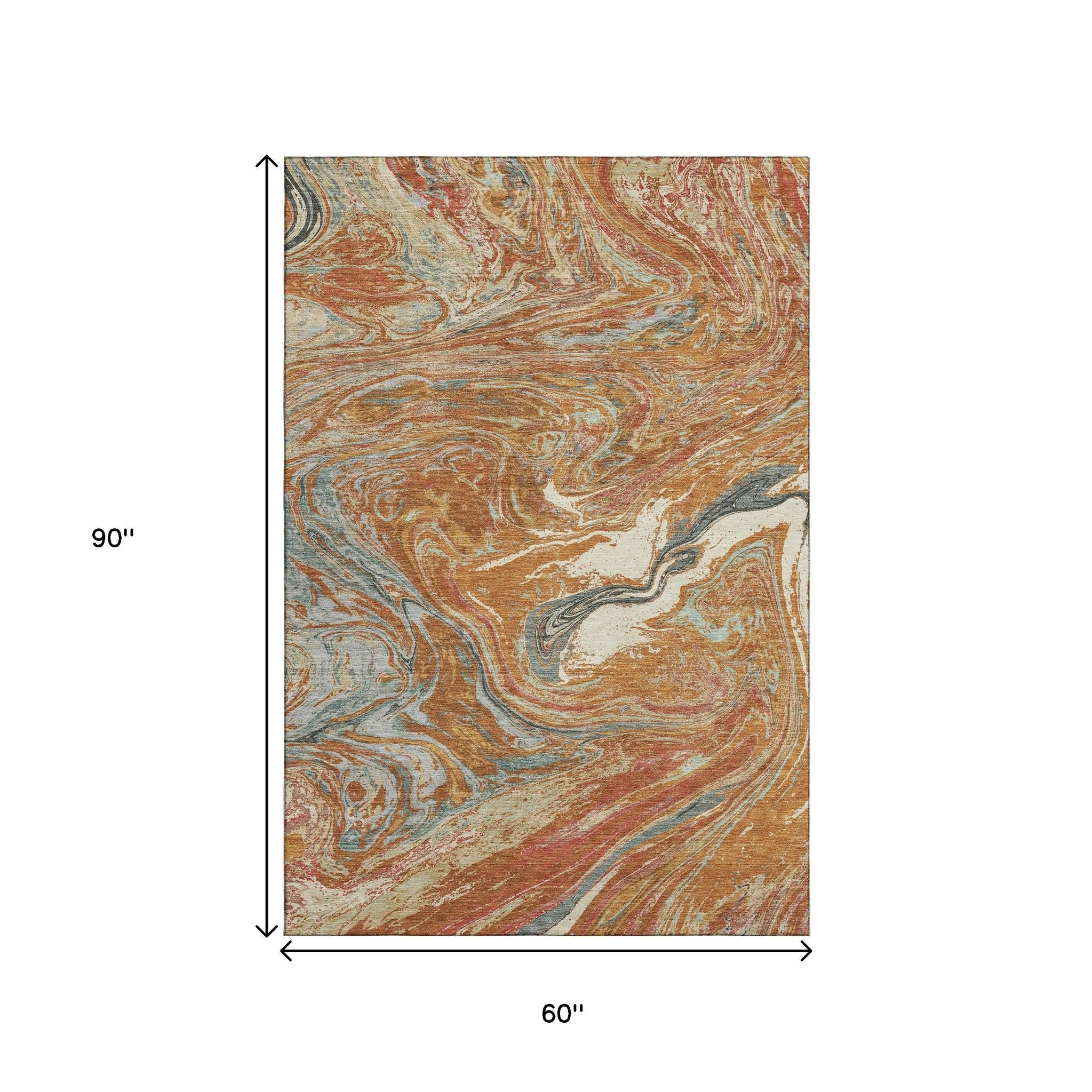 This 5-foot x 8-foot rust gray and ivory abstract washable area rug with uv protection, is a great way to add warmth to a room. Ideal for spaces with kids and pets, this rug is stain resistant to help repel dirt and spilled liquids. Built to last, this rug crafted from polyester fibers is known for its durability and long lasting appeal. Rugs are a great way to showcase your style, hide imperfections, warm your home and reduce noise. This larger sized, transitional styled rug is ready to create a focal point or statement piece in your room. 60.00-inch h x 90.00-inch w x 0.39-inch d.