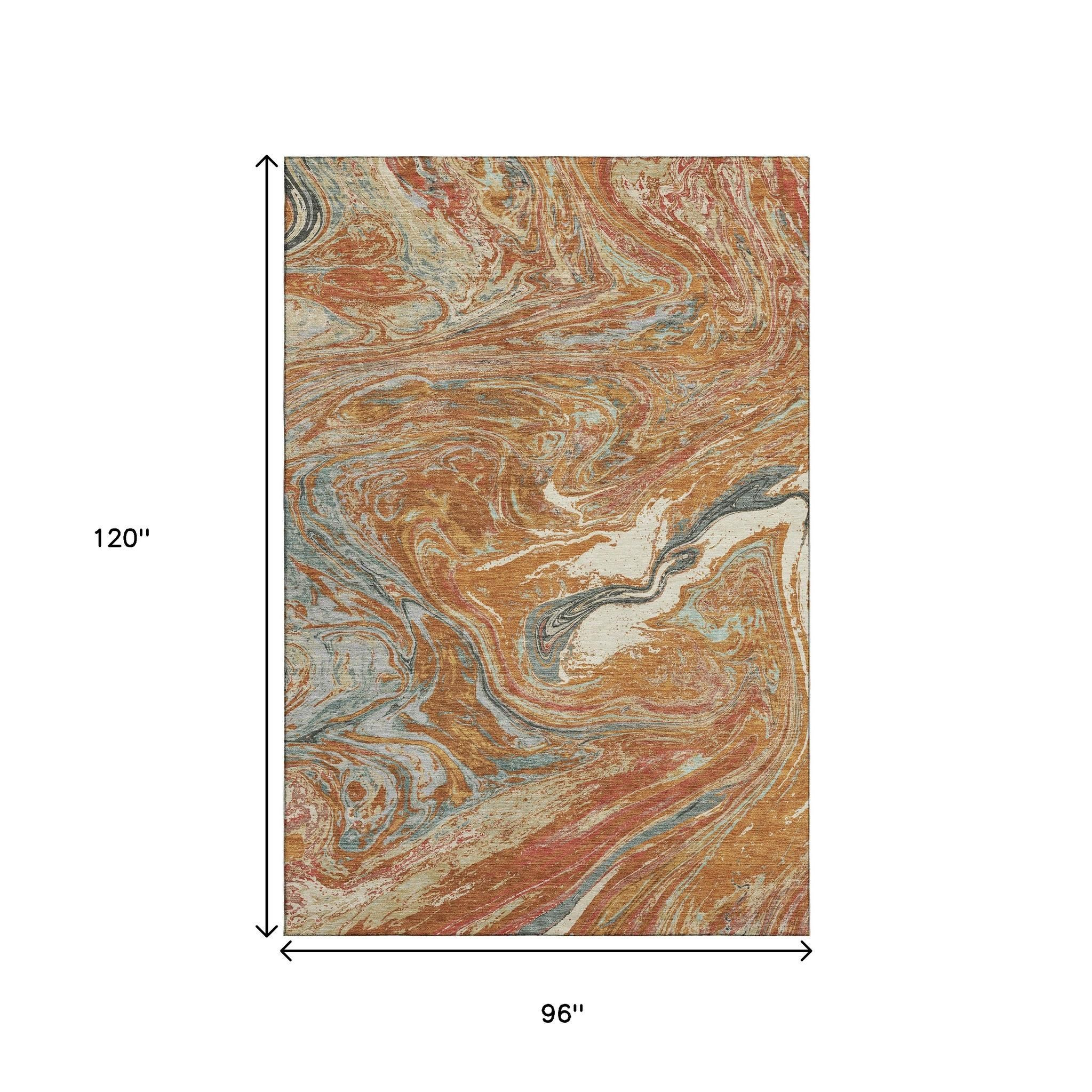 Set an inviting tone in your space with this 8-foot x 10-foot rust gray and ivory abstract washable area rug with uv protection. Ideal for spaces with kids and pets, this rug is stain resistant to help repel dirt and spilled liquids. Built to last, this rug crafted from polyester fibers is known for its durability and long lasting appeal. Rugs are a great way to showcase your style, hide imperfections, warm your home and reduce noise. This larger sized, transitional styled rug is ready to create a focal point or statement piece in your room. 96.00-inch h x 120.00-inch w x 0.39-inch d.