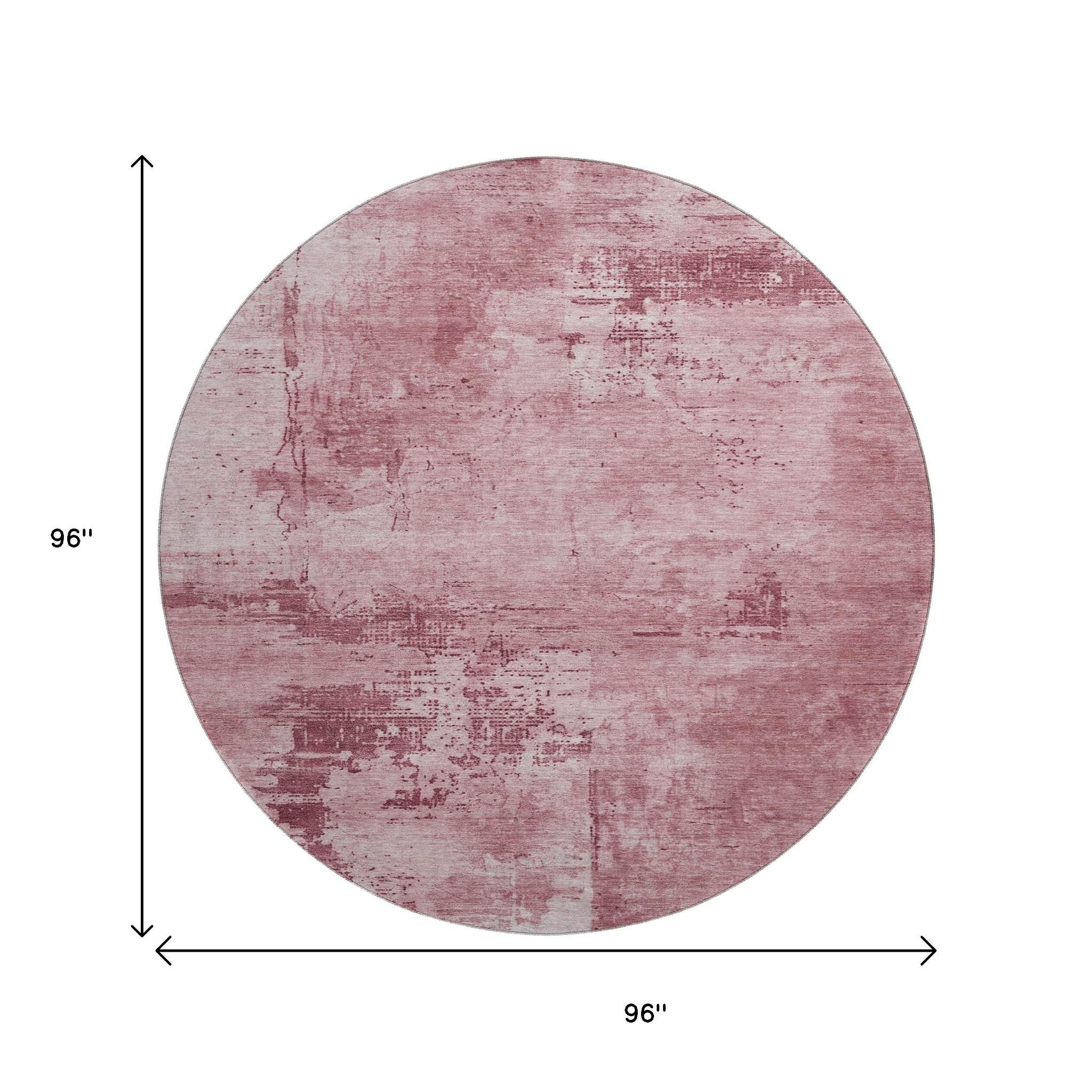 Add some artistry to your room with this 8-foot blush and mauve abstract washable round rug with uv protection. Ideal for spaces with kids and pets, this rug is stain resistant to help repel dirt and spilled liquids. Built to last, this rug crafted from polyester fibers is known for its durability and long lasting appeal. Rugs are a great way to showcase your style, hide imperfections, warm your home and reduce noise. This larger sized, transitional styled rug is ready to create a focal point or statement piece in your room. 96.00-inch h x 96.00-inch w x 0.39-inch d.