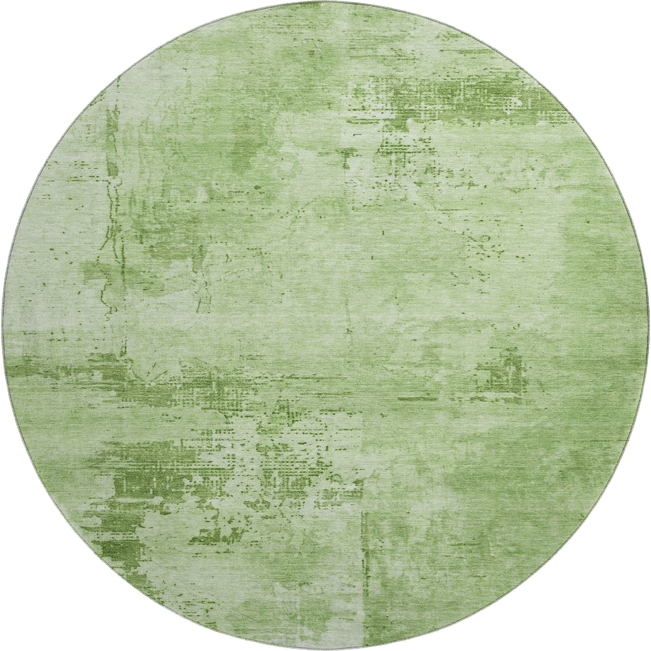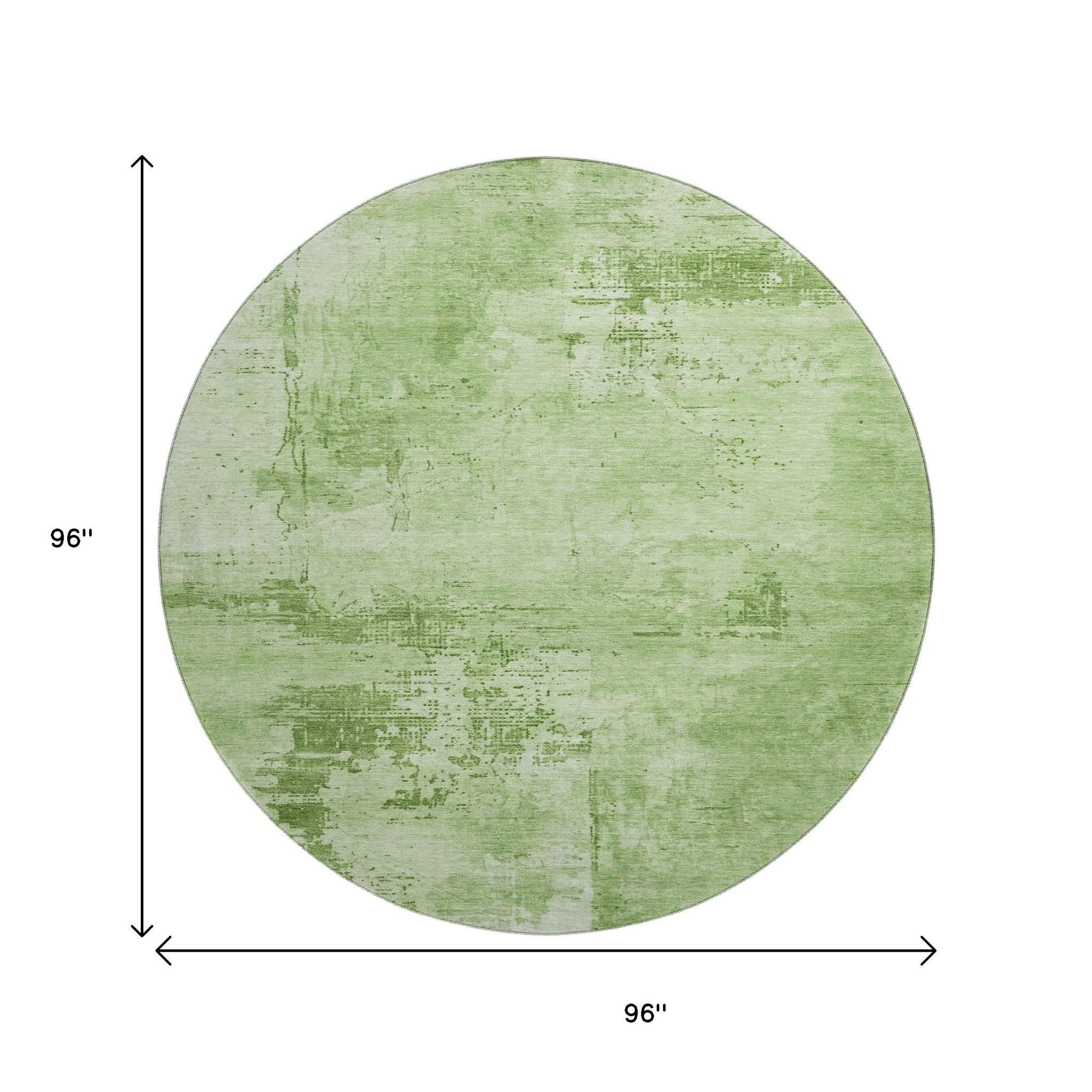 Set an inviting tone in your space with this 8-foot green and beige abstract washable round rug with uv protection. Ideal for spaces with kids and pets, this rug is stain resistant to help repel dirt and spilled liquids. Built to last, this rug crafted from polyester fibers is known for its durability and long lasting appeal. Rugs are a great way to showcase your style, hide imperfections, warm your home and reduce noise. This larger sized, transitional styled rug is ready to create a focal point or statement piece in your room. 96.00-inch h x 96.00-inch w x 0.39-inch d.