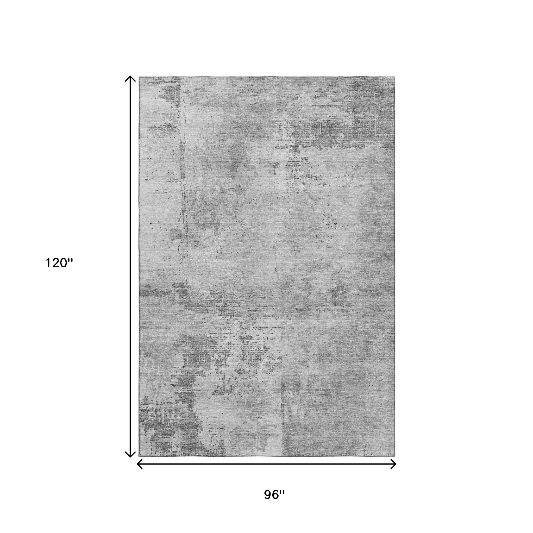 Add some artistry to your room with this 8-foot x 10-foot gray and silver abstract washable area rug with uv protection. Ideal for spaces with kids and pets, this rug is stain resistant to help repel dirt and spilled liquids. Built to last, this rug crafted from polyester fibers is known for its durability and long lasting appeal. Rugs are a great way to showcase your style, hide imperfections, warm your home and reduce noise. This larger sized, transitional styled rug is ready to create a focal point or statement piece in your room. 96.00-inch h x 120.00-inch w x 0.39-inch d.