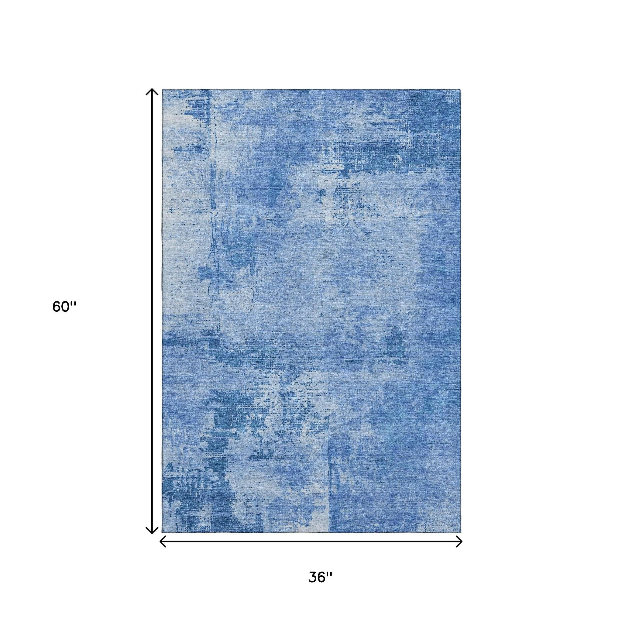 Add some artistry to your room with this 3-foot x 5-foot navy blue and sky blue abstract washable area rug with uv protection. Ideal for spaces with kids and pets, this rug is stain resistant to help repel dirt and spilled liquids. Built to last, this rug crafted from polyester fibers is known for its durability and long lasting appeal. Rugs are a great way to showcase your style, hide imperfections, warm your home and reduce noise. This smaller sized, transitional styled rug is just what you need for your walkway, bedside, in front of door, cabinet, refrigerator, or chair. 36.00-inch h x 60.00-inch w x 0.39-inch d.