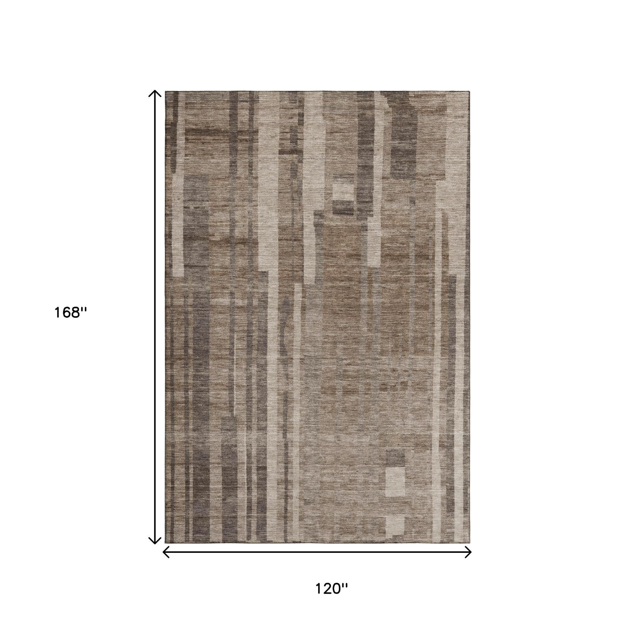 Add some artistry to your room with this 10-foot x 14-foot brown and taupe striped washable area rug with uv protection. Ideal for spaces with kids and pets, this rug is stain resistant to help repel dirt and spilled liquids. Built to last, this rug crafted from polyester fibers is known for its durability and long lasting appeal. Rugs are a great way to showcase your style, hide imperfections, warm your home and reduce noise. This larger sized, transitional styled rug is ready to create a focal point or statement piece in your room. 120.00-inch h x 168.00-inch w x 0.39-inch d.