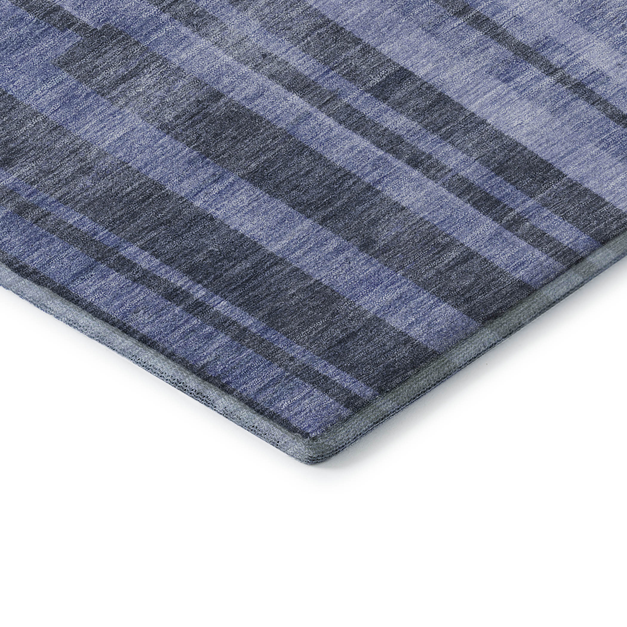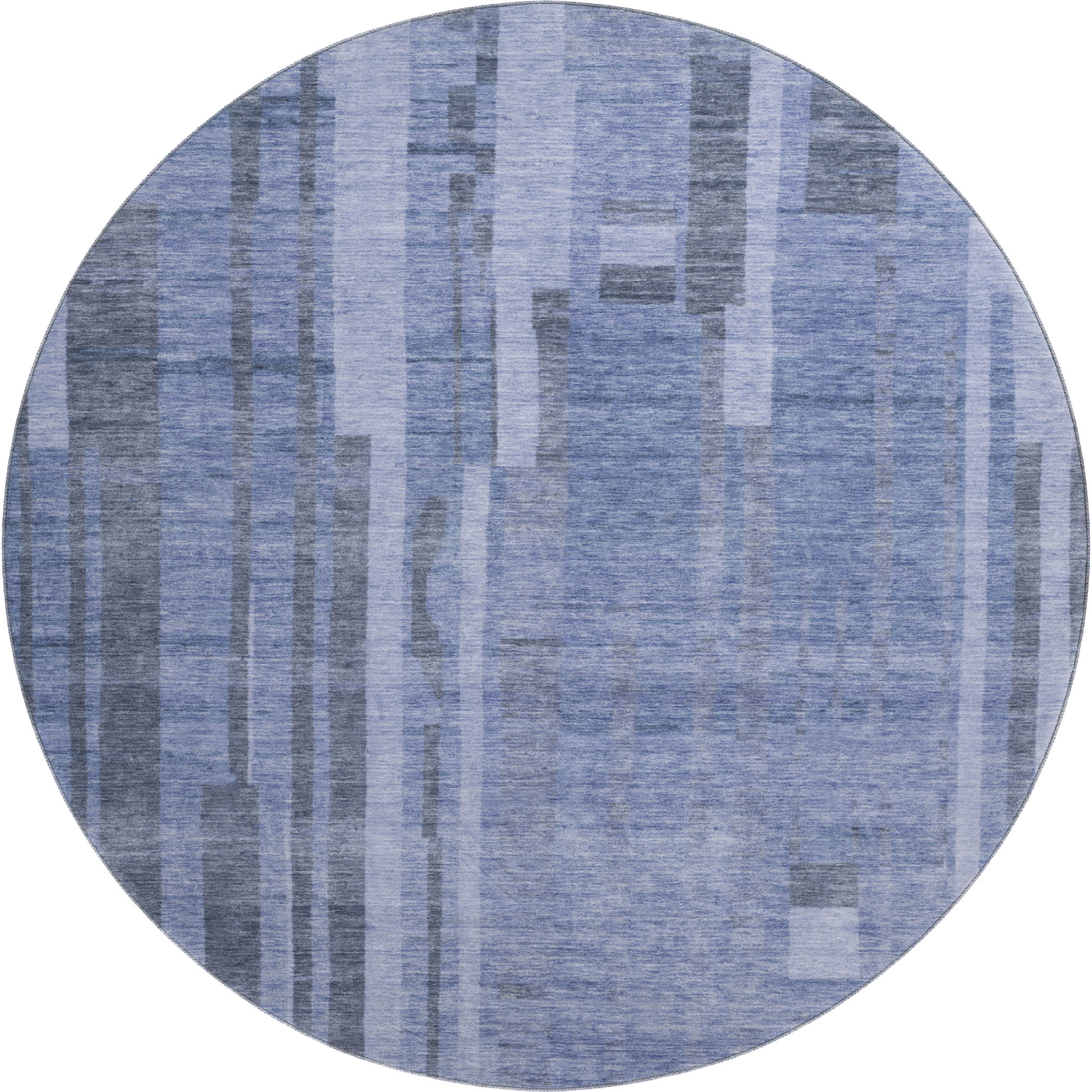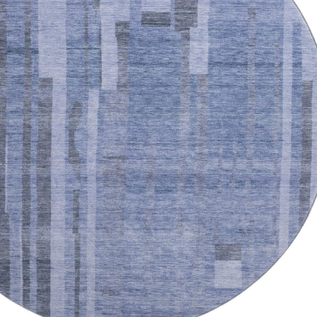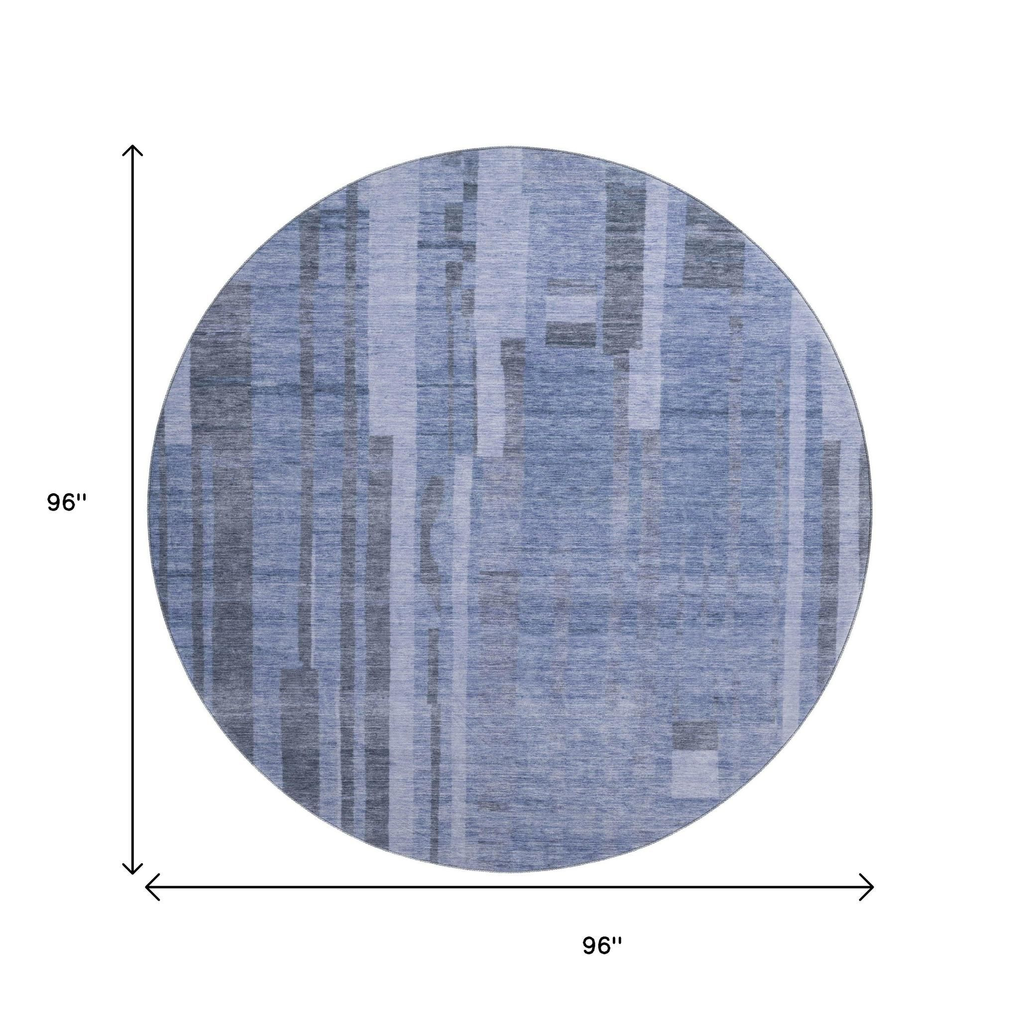 Add some artistry to your room with this 8-foot denim blue and gray striped washable round rug with uv protection. Ideal for spaces with kids and pets, this rug is stain resistant to help repel dirt and spilled liquids. Built to last, this rug crafted from polyester fibers is known for its durability and long lasting appeal. Rugs are a great way to showcase your style, hide imperfections, warm your home and reduce noise. This larger sized, transitional styled rug is ready to create a focal point or statement piece in your room. 96.00-inch h x 96.00-inch w x 0.39-inch d.