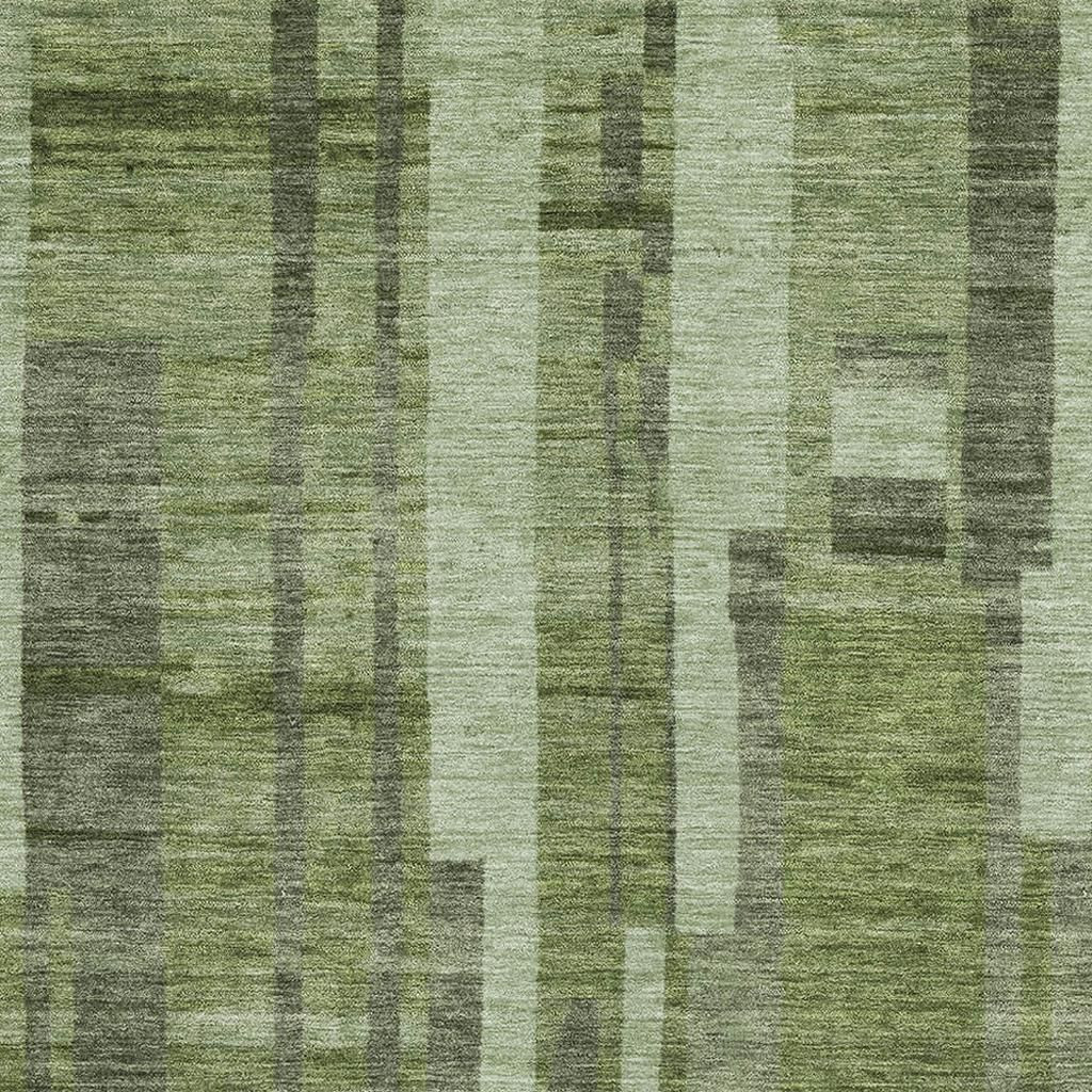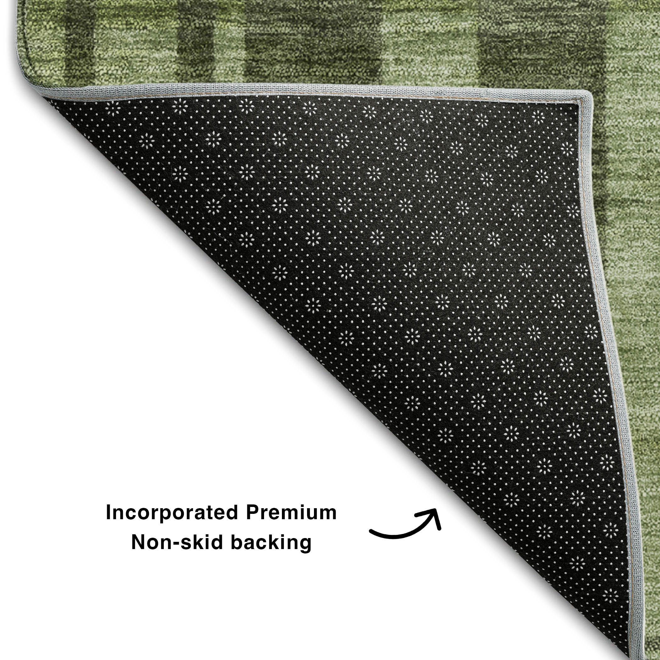Add some artistry to your room with this 5-foot x 8-foot green and gray striped washable area rug with uv protection. Ideal for spaces with kids and pets, this rug is stain resistant to help repel dirt and spilled liquids. Built to last, this rug crafted from polyester fibers is known for its durability and long lasting appeal. Rugs are a great way to showcase your style, hide imperfections, warm your home and reduce noise. This larger sized, transitional styled rug is ready to create a focal point or statement piece in your room. 60.00-inch h x 90.00-inch w x 0.39-inch d.