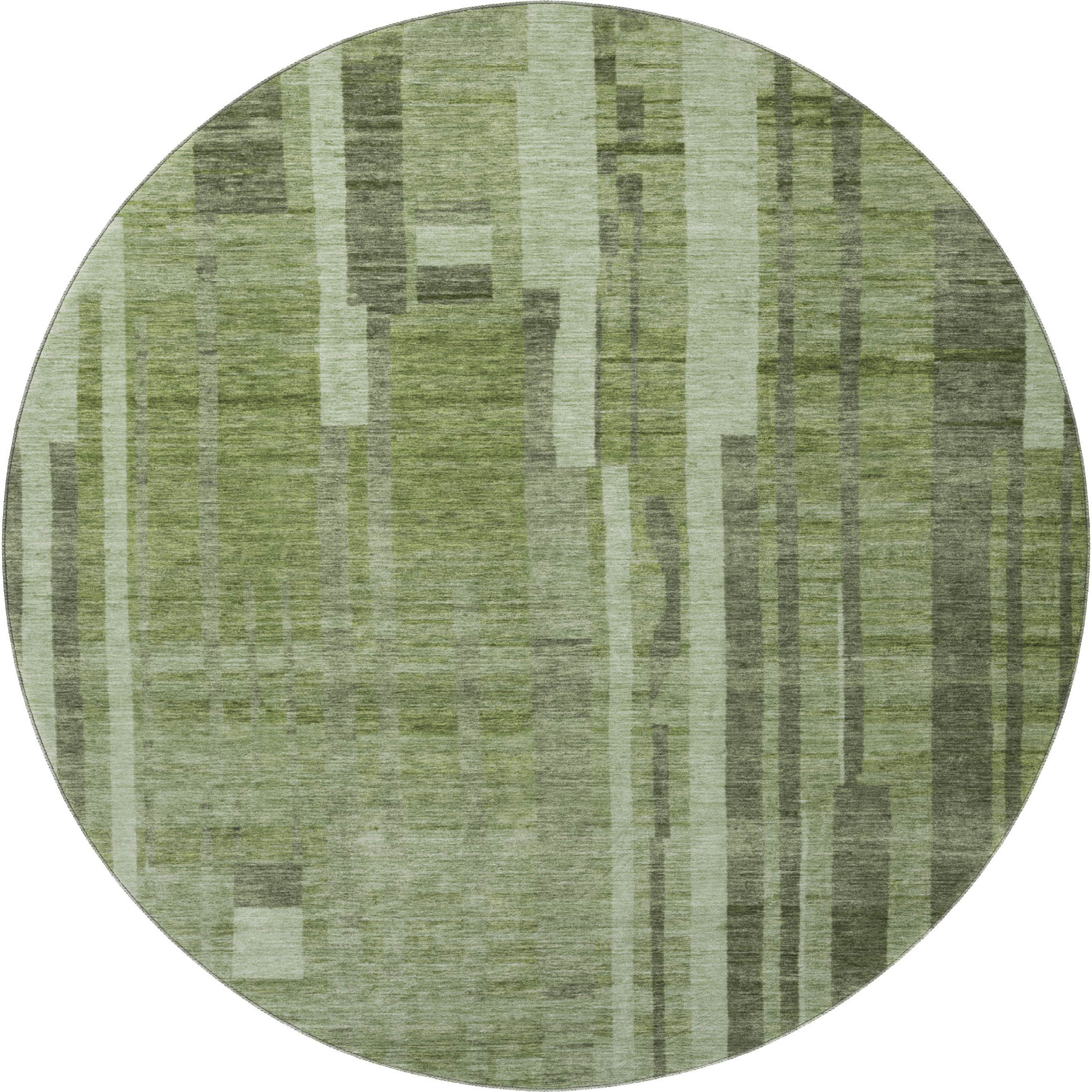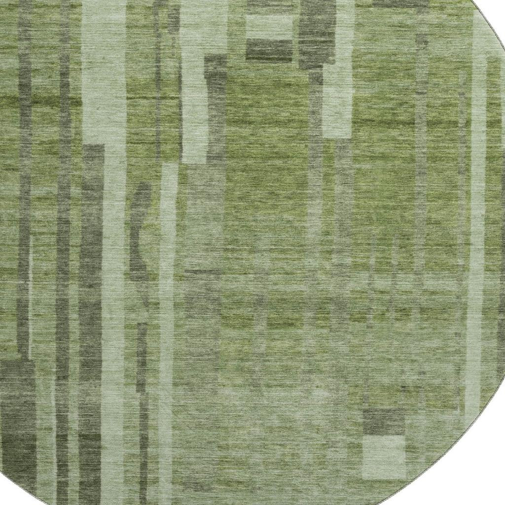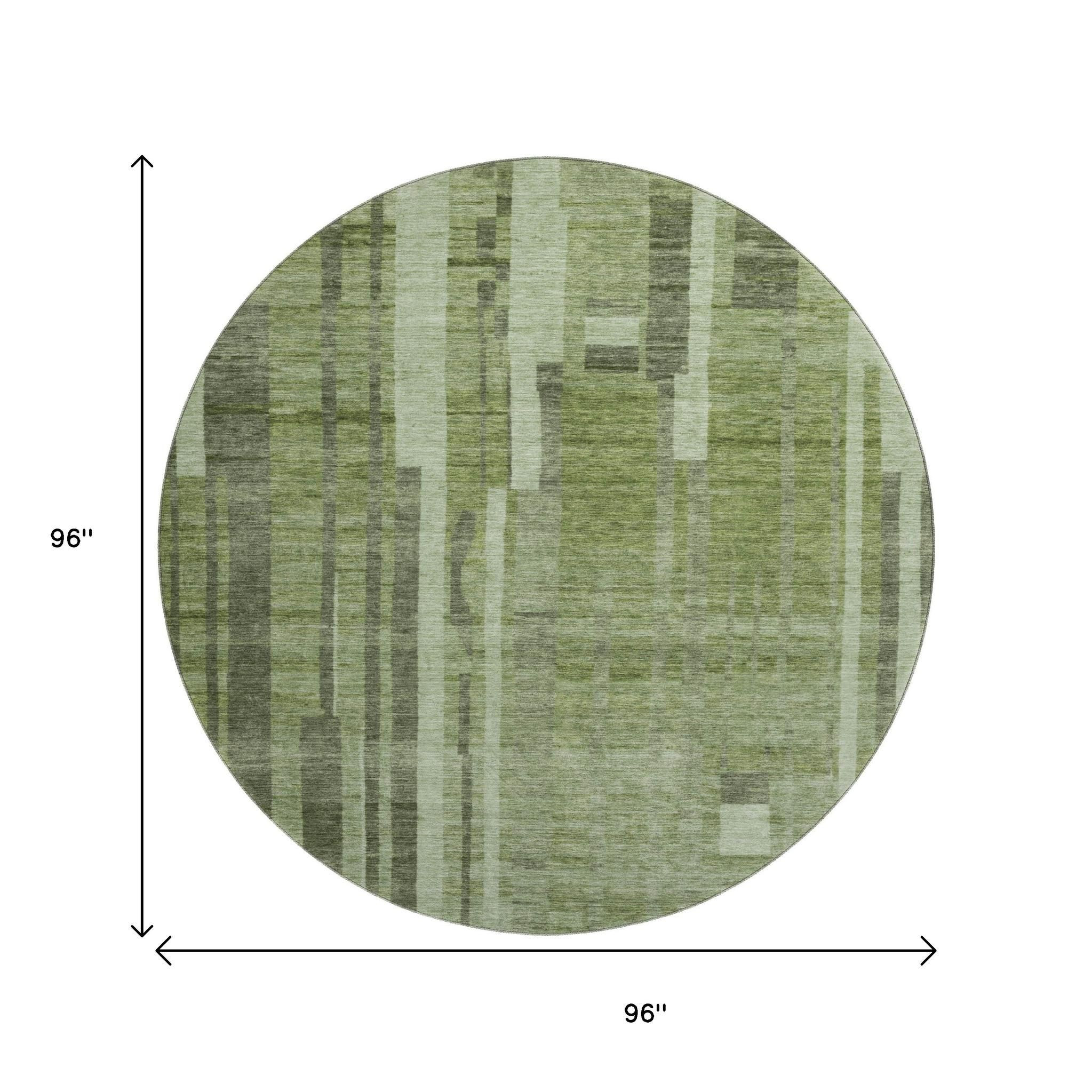 Add some artistry to your room with this 8-foot green and gray striped washable round rug with uv protection. Ideal for spaces with kids and pets, this rug is stain resistant to help repel dirt and spilled liquids. Built to last, this rug crafted from polyester fibers is known for its durability and long lasting appeal. Rugs are a great way to showcase your style, hide imperfections, warm your home and reduce noise. This larger sized, transitional styled rug is ready to create a focal point or statement piece in your room. 96.00-inch h x 96.00-inch w x 0.39-inch d.