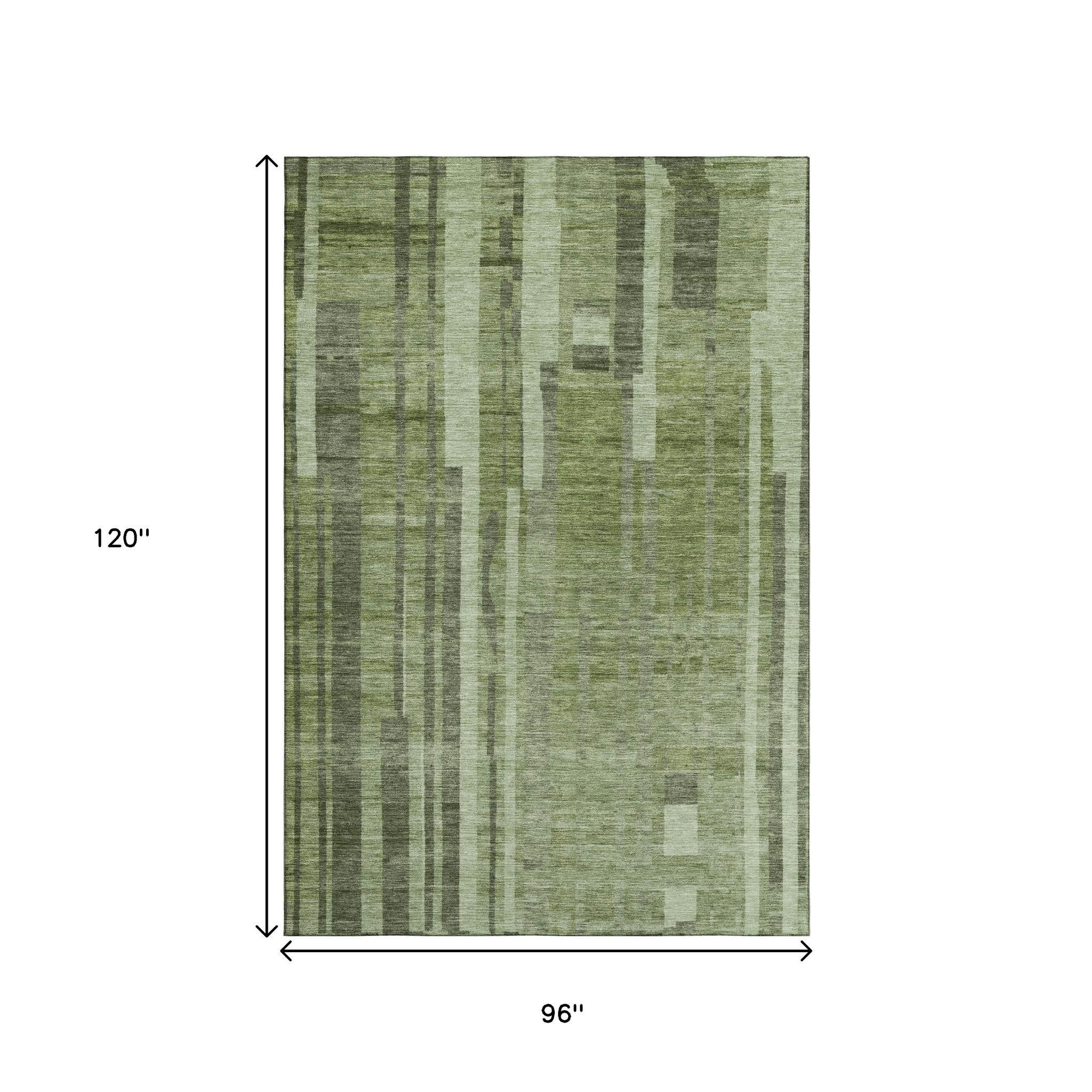 Add some artistry to your room with this 8-foot x 10-foot green and gray striped washable area rug with uv protection. Ideal for spaces with kids and pets, this rug is stain resistant to help repel dirt and spilled liquids. Built to last, this rug crafted from polyester fibers is known for its durability and long lasting appeal. Rugs are a great way to showcase your style, hide imperfections, warm your home and reduce noise. This larger sized, transitional styled rug is ready to create a focal point or statement piece in your room. 96.00-inch h x 120.00-inch w x 0.39-inch d.