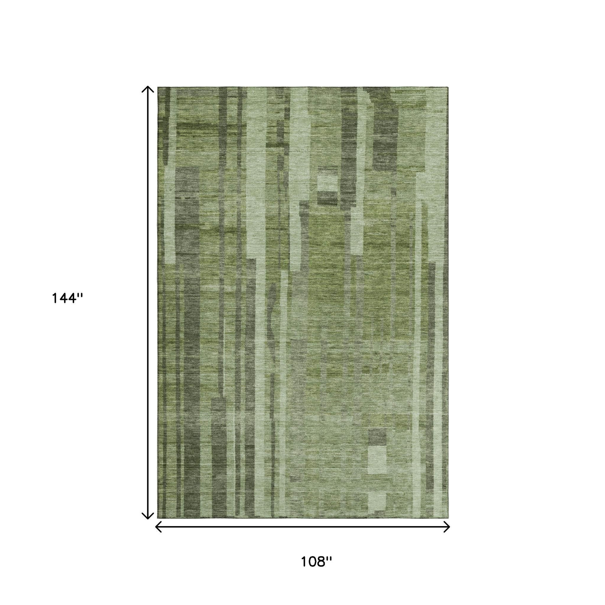Add some artistry to your room with this 9-foot x 12-foot green and gray striped washable area rug with uv protection. Ideal for spaces with kids and pets, this rug is stain resistant to help repel dirt and spilled liquids. Built to last, this rug crafted from polyester fibers is known for its durability and long lasting appeal. Rugs are a great way to showcase your style, hide imperfections, warm your home and reduce noise. This larger sized, transitional styled rug is ready to create a focal point or statement piece in your room. 108.00-inch h x 144.00-inch w x 0.39-inch d.