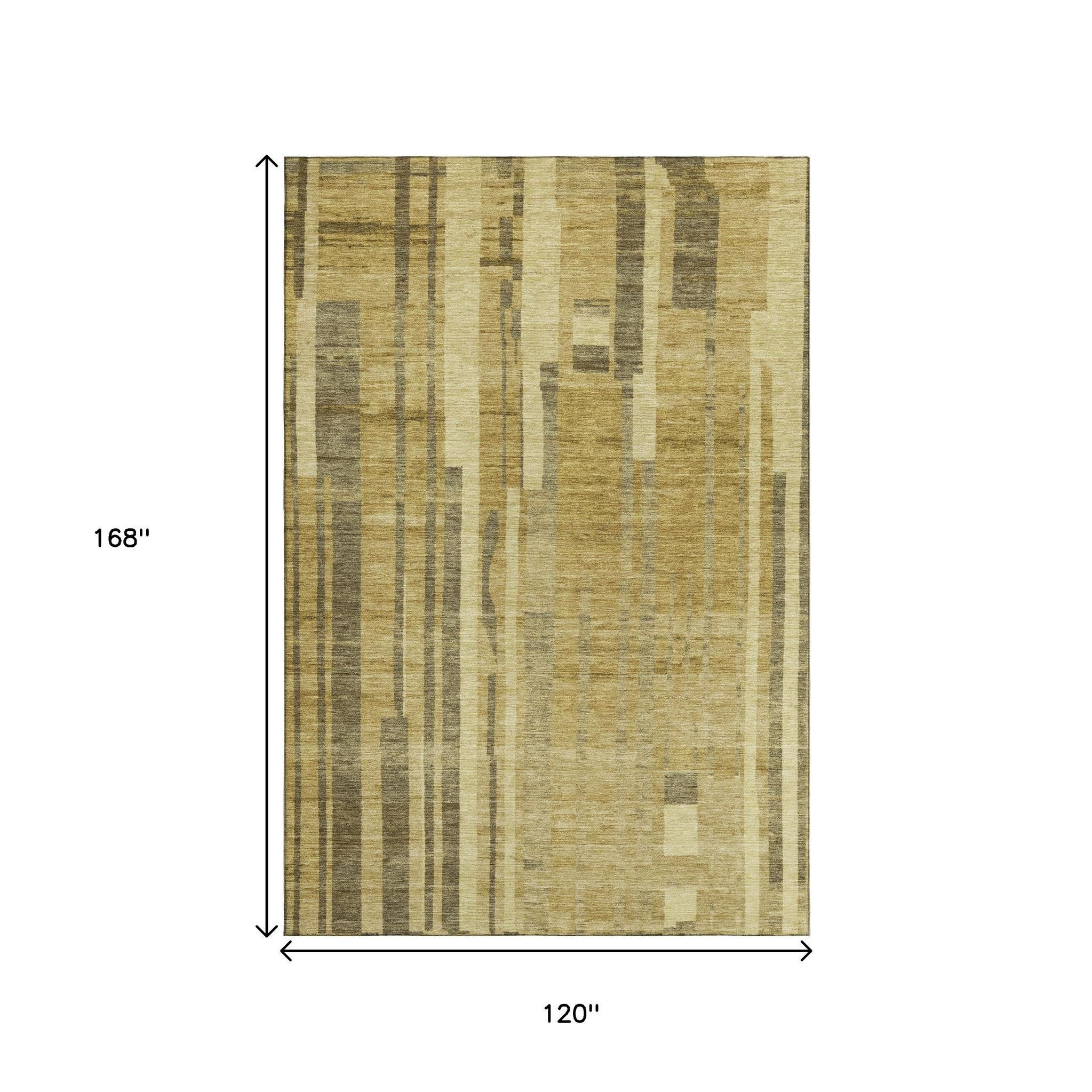 Add great coloration and comfortable texture to your space with this 10-foot x 14-foot gold and brown striped washable area rug with uv protection. Ideal for spaces with kids and pets, this rug is stain resistant to help repel dirt and spilled liquids. Built to last, this rug crafted from polyester fibers is known for its durability and long lasting appeal. Rugs are a great way to showcase your style, hide imperfections, warm your home and reduce noise. This larger sized, transitional styled rug is ready to create a focal point or statement piece in your room. 120.00-inch h x 168.00-inch w x 0.39-inch d.