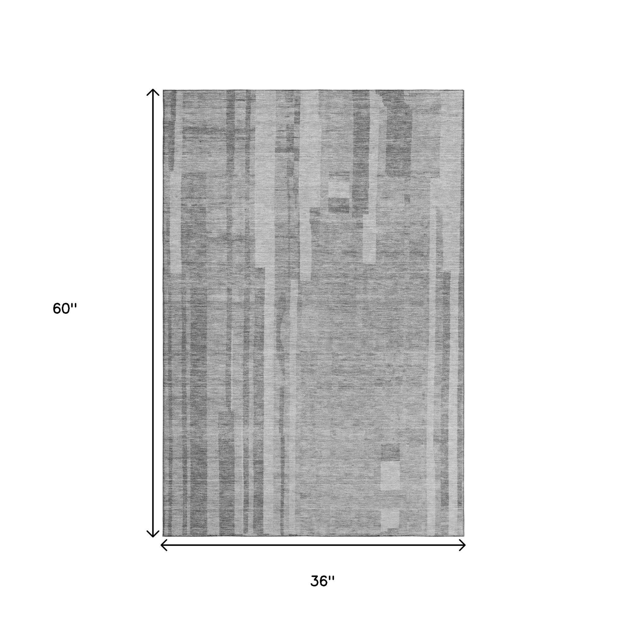 This 3-foot x 5-foot gray and silver striped washable area rug with uv protection, is a great way to add warmth to a room. Ideal for spaces with kids and pets, this rug is stain resistant to help repel dirt and spilled liquids. Built to last, this rug crafted from polyester fibers is known for its durability and long lasting appeal. Rugs are a great way to showcase your style, hide imperfections, warm your home and reduce noise. This smaller sized, transitional styled rug is just what you need for your walkway, bedside, in front of door, cabinet, refrigerator, or chair. 36.00-inch h x 60.00-inch w x 0.39-inch d.