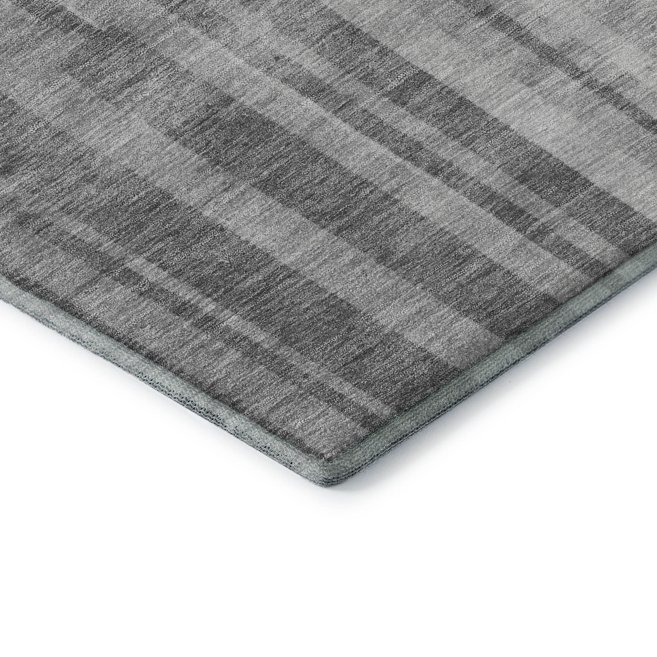 Set an inviting tone in your space with this 5-foot x 8-foot gray and silver striped washable area rug with uv protection. Ideal for spaces with kids and pets, this rug is stain resistant to help repel dirt and spilled liquids. Built to last, this rug crafted from polyester fibers is known for its durability and long lasting appeal. Rugs are a great way to showcase your style, hide imperfections, warm your home and reduce noise. This larger sized, transitional styled rug is ready to create a focal point or statement piece in your room. 60.00-inch h x 90.00-inch w x 0.39-inch d.