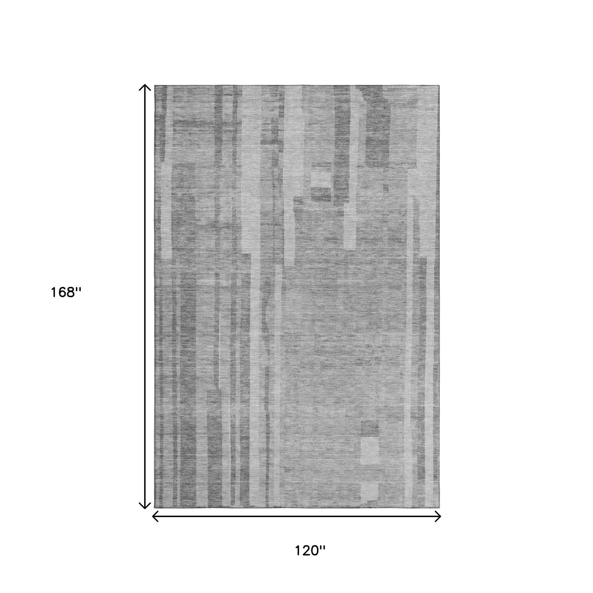 Set an inviting tone in your space with this 10-foot x 14-foot gray and silver striped washable area rug with uv protection. Ideal for spaces with kids and pets, this rug is stain resistant to help repel dirt and spilled liquids. Built to last, this rug crafted from polyester fibers is known for its durability and long lasting appeal. Rugs are a great way to showcase your style, hide imperfections, warm your home and reduce noise. This larger sized, transitional styled rug is ready to create a focal point or statement piece in your room. 120.00-inch h x 168.00-inch w x 0.39-inch d.