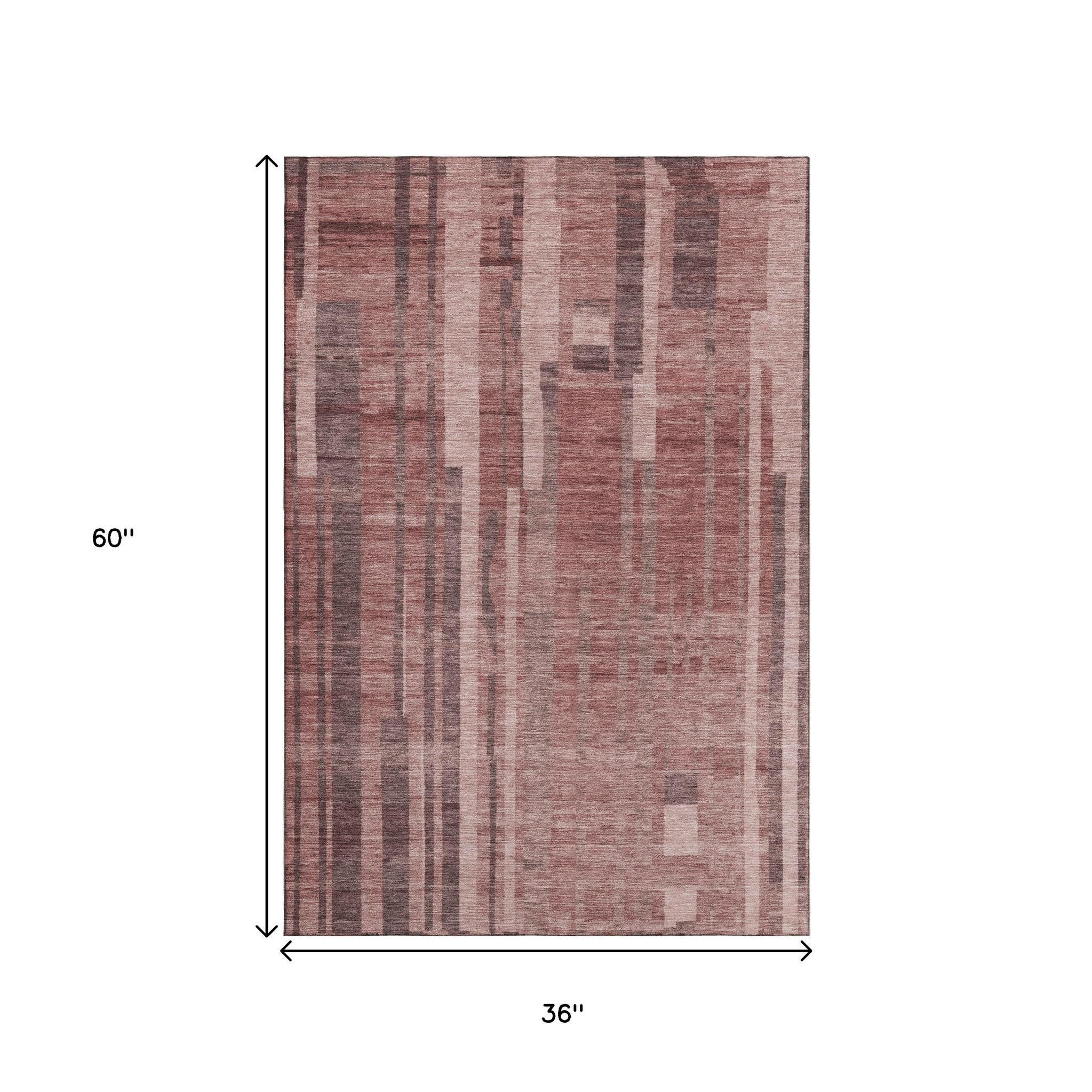 Set an inviting tone in your space with this 3-foot x 5-foot rust and coral striped washable area rug with uv protection. Ideal for spaces with kids and pets, this rug is stain resistant to help repel dirt and spilled liquids. Built to last, this rug crafted from polyester fibers is known for its durability and long lasting appeal. Rugs are a great way to showcase your style, hide imperfections, warm your home and reduce noise. This smaller sized, transitional styled rug is just what you need for your walkway, bedside, in front of door, cabinet, refrigerator, or chair. 36.00-inch h x 60.00-inch w x 0.39-inch d.