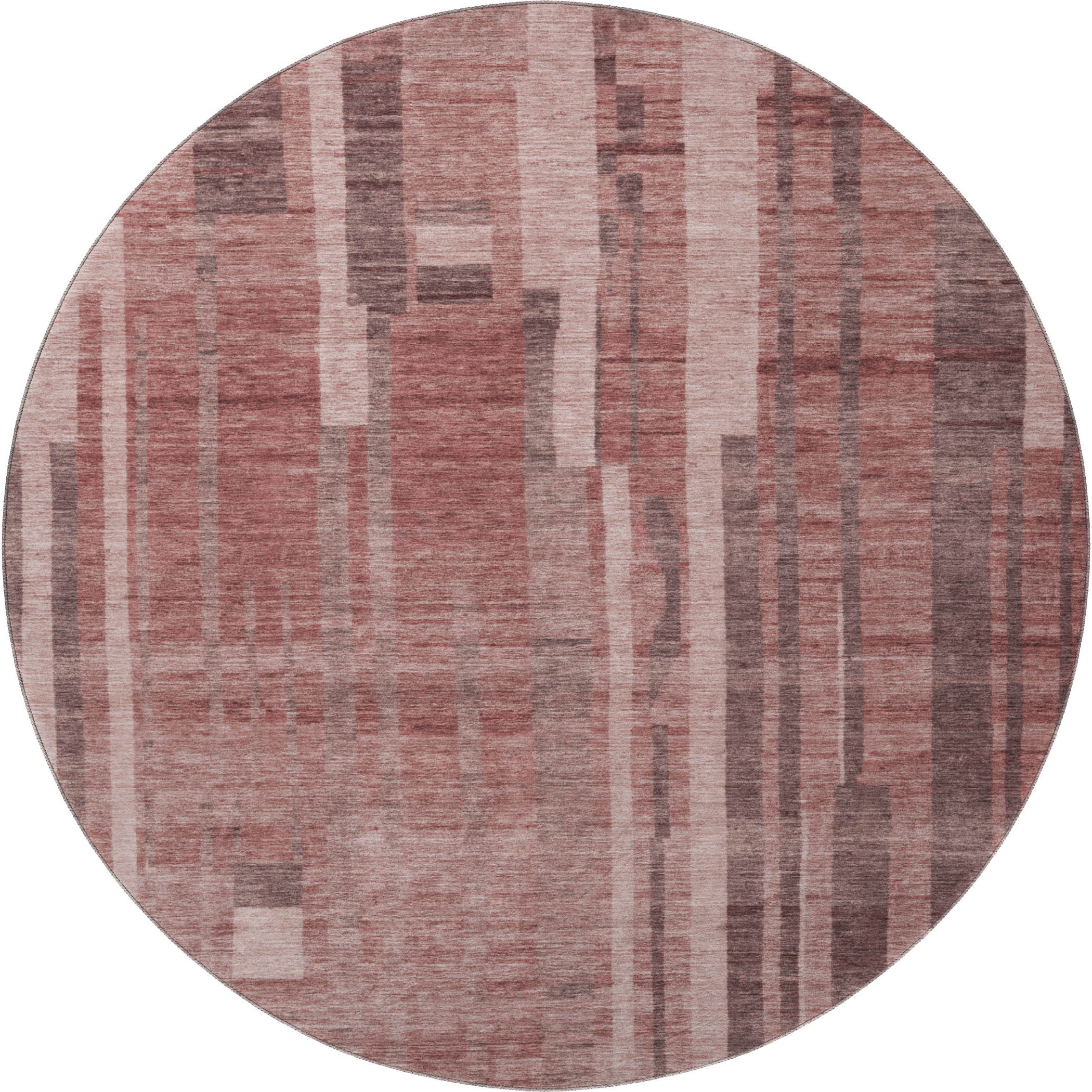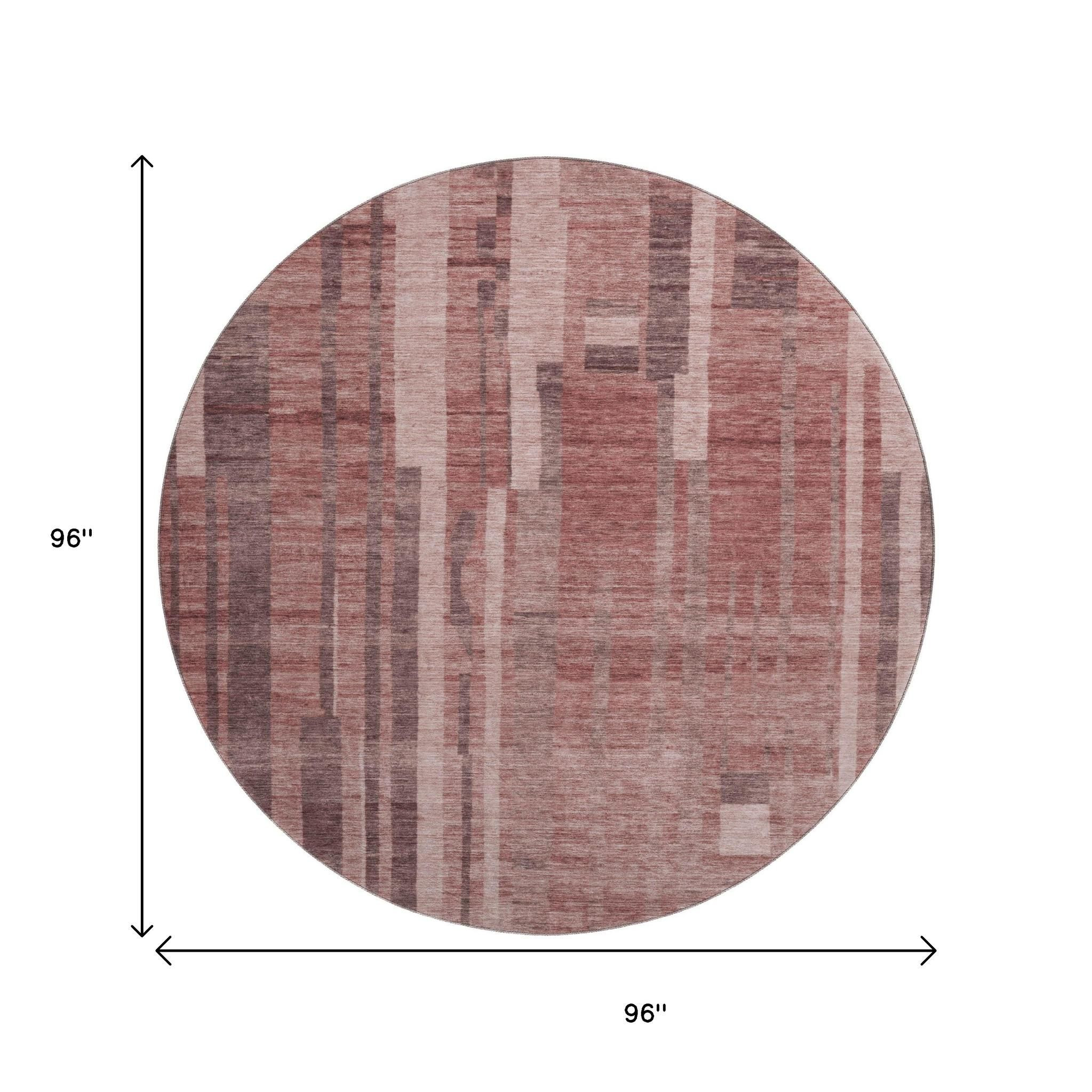 Add great coloration and comfortable texture to your space with this 8-foot rust and coral striped washable round rug with uv protection. Ideal for spaces with kids and pets, this rug is stain resistant to help repel dirt and spilled liquids. Built to last, this rug crafted from polyester fibers is known for its durability and long lasting appeal. Rugs are a great way to showcase your style, hide imperfections, warm your home and reduce noise. This larger sized, transitional styled rug is ready to create a focal point or statement piece in your room. 96.00-inch h x 96.00-inch w x 0.39-inch d.