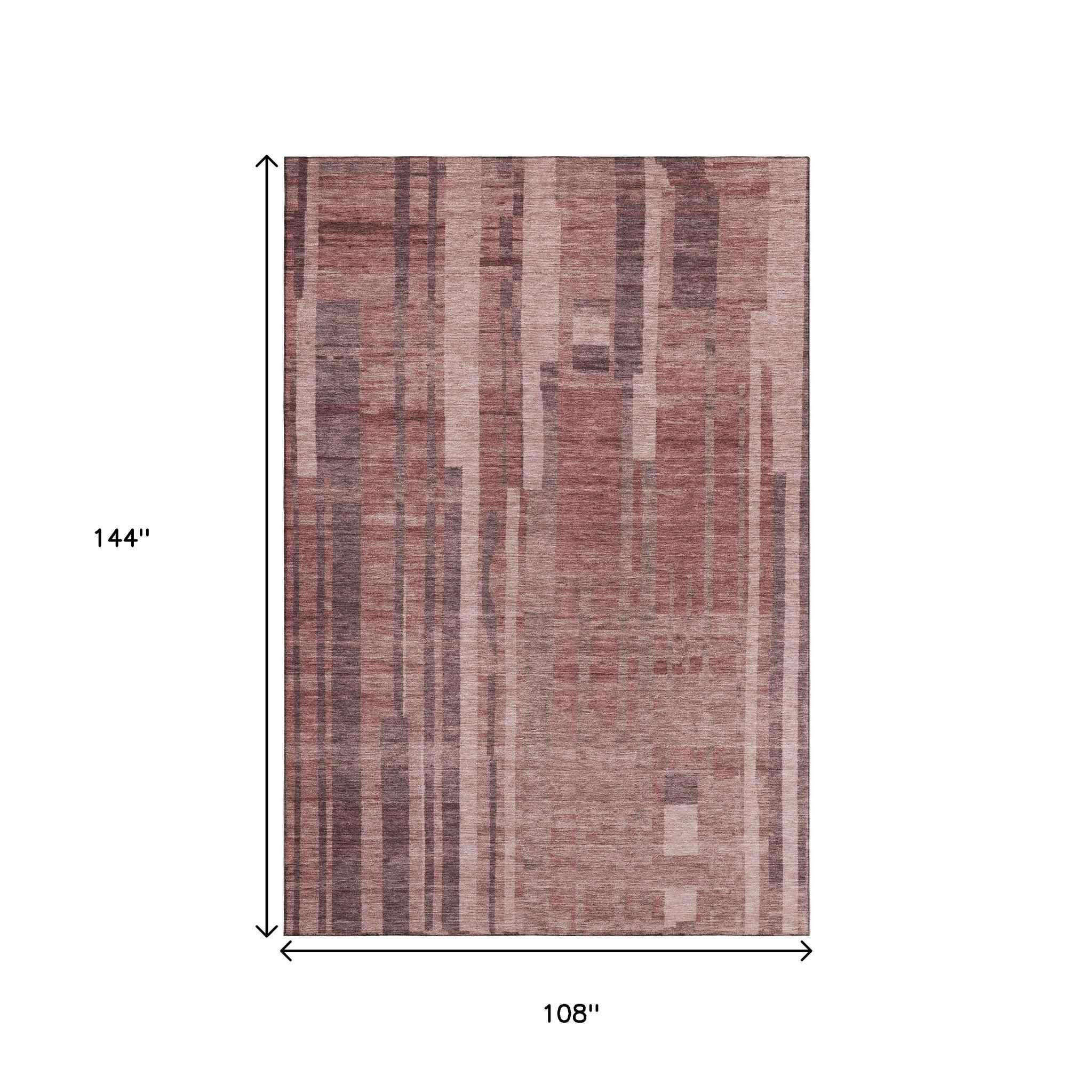 Add some artistry to your room with this 9-foot x 12-foot rust and coral striped washable area rug with uv protection. Ideal for spaces with kids and pets, this rug is stain resistant to help repel dirt and spilled liquids. Built to last, this rug crafted from polyester fibers is known for its durability and long lasting appeal. Rugs are a great way to showcase your style, hide imperfections, warm your home and reduce noise. This larger sized, transitional styled rug is ready to create a focal point or statement piece in your room. 108.00-inch h x 144.00-inch w x 0.39-inch d.