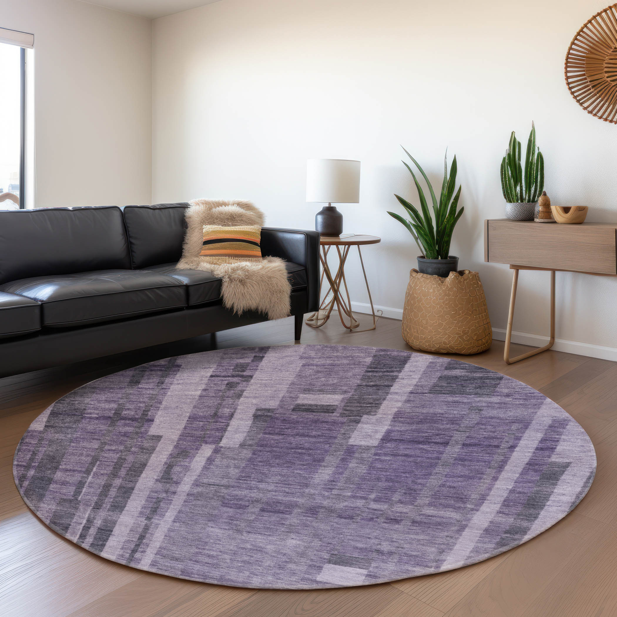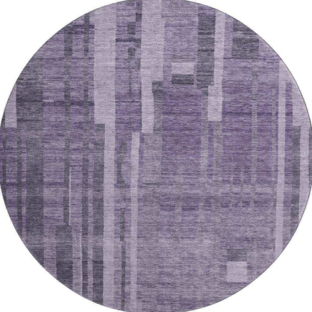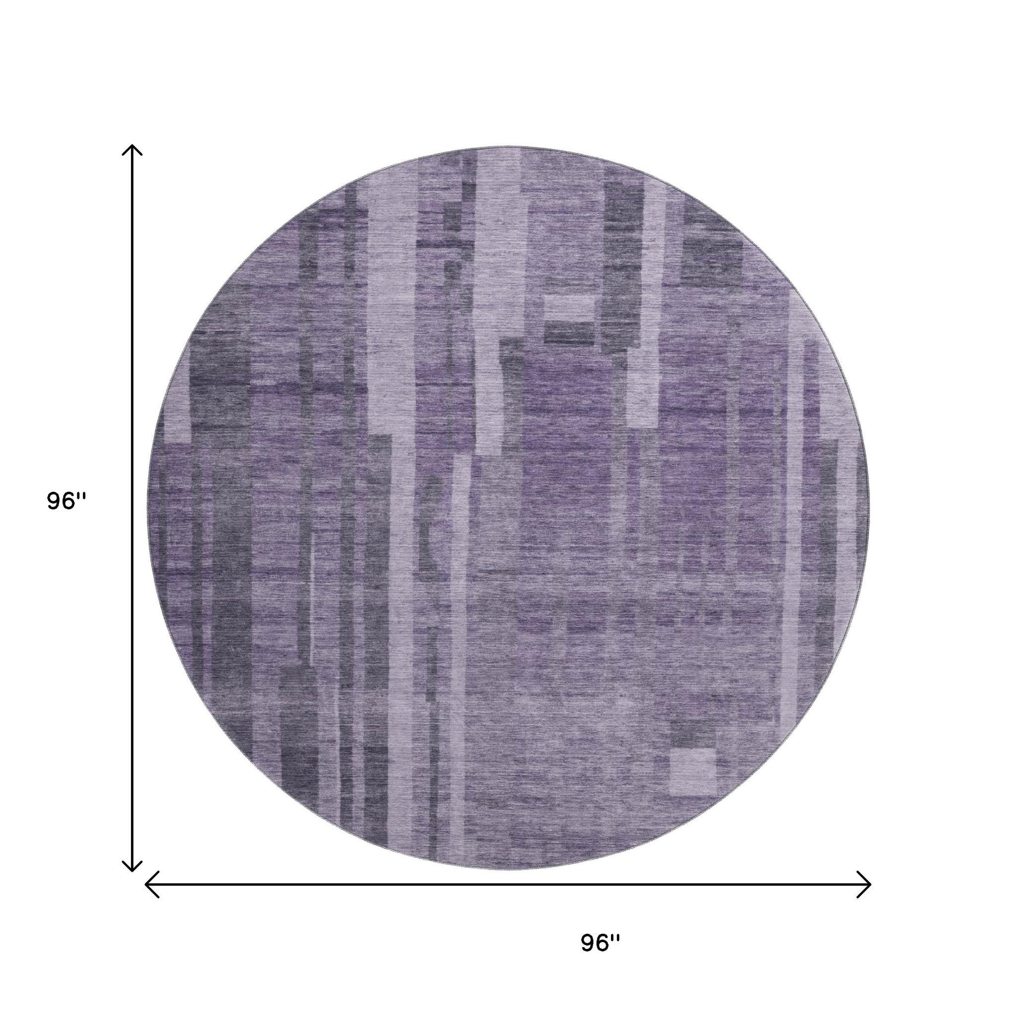 This 8-foot purple and lilac striped washable round rug with uv protection, is a great way to add warmth to a room. Ideal for spaces with kids and pets, this rug is stain resistant to help repel dirt and spilled liquids. Built to last, this rug crafted from polyester fibers is known for its durability and long lasting appeal. Rugs are a great way to showcase your style, hide imperfections, warm your home and reduce noise. This larger sized, transitional styled rug is ready to create a focal point or statement piece in your room. 96.00-inch h x 96.00-inch w x 0.39-inch d.