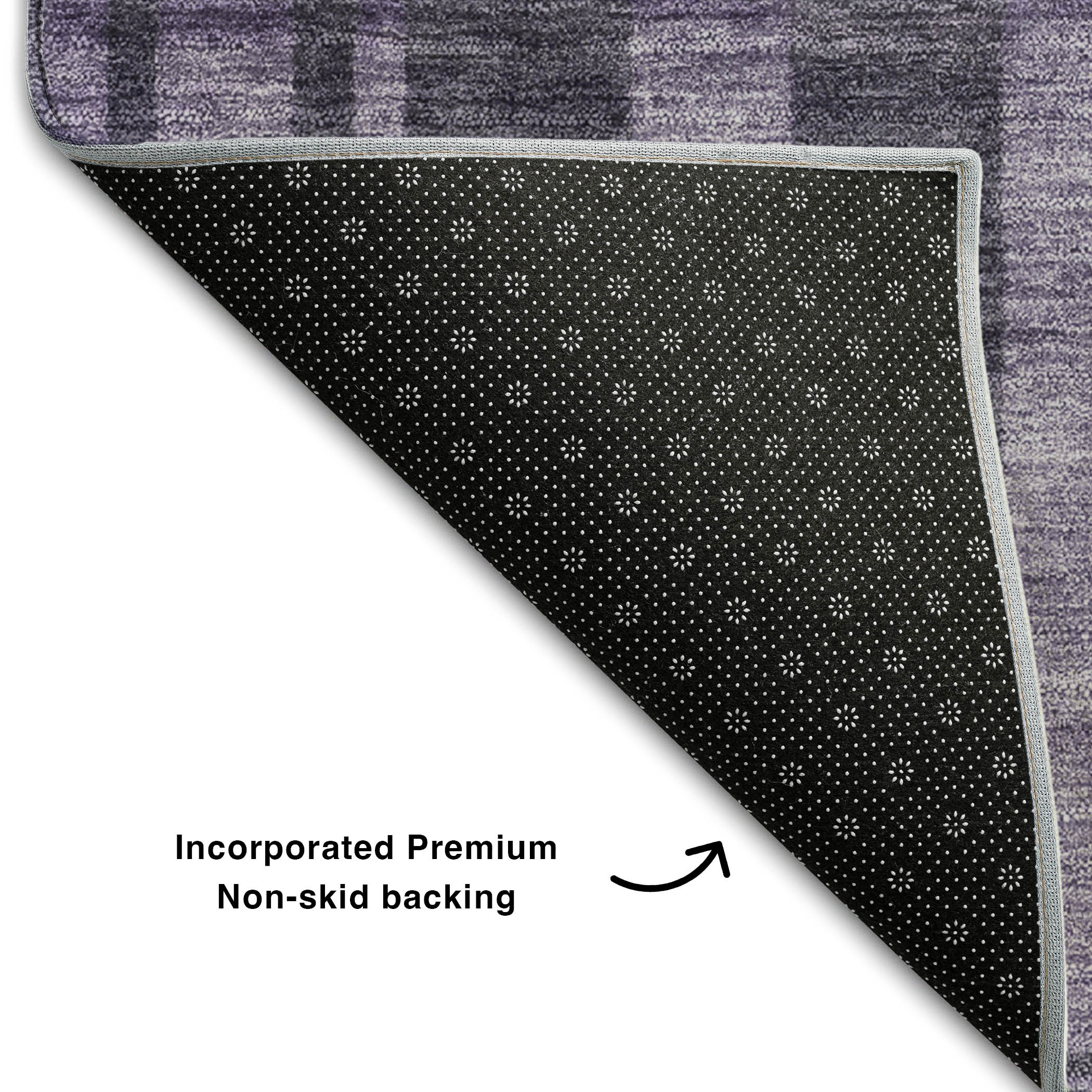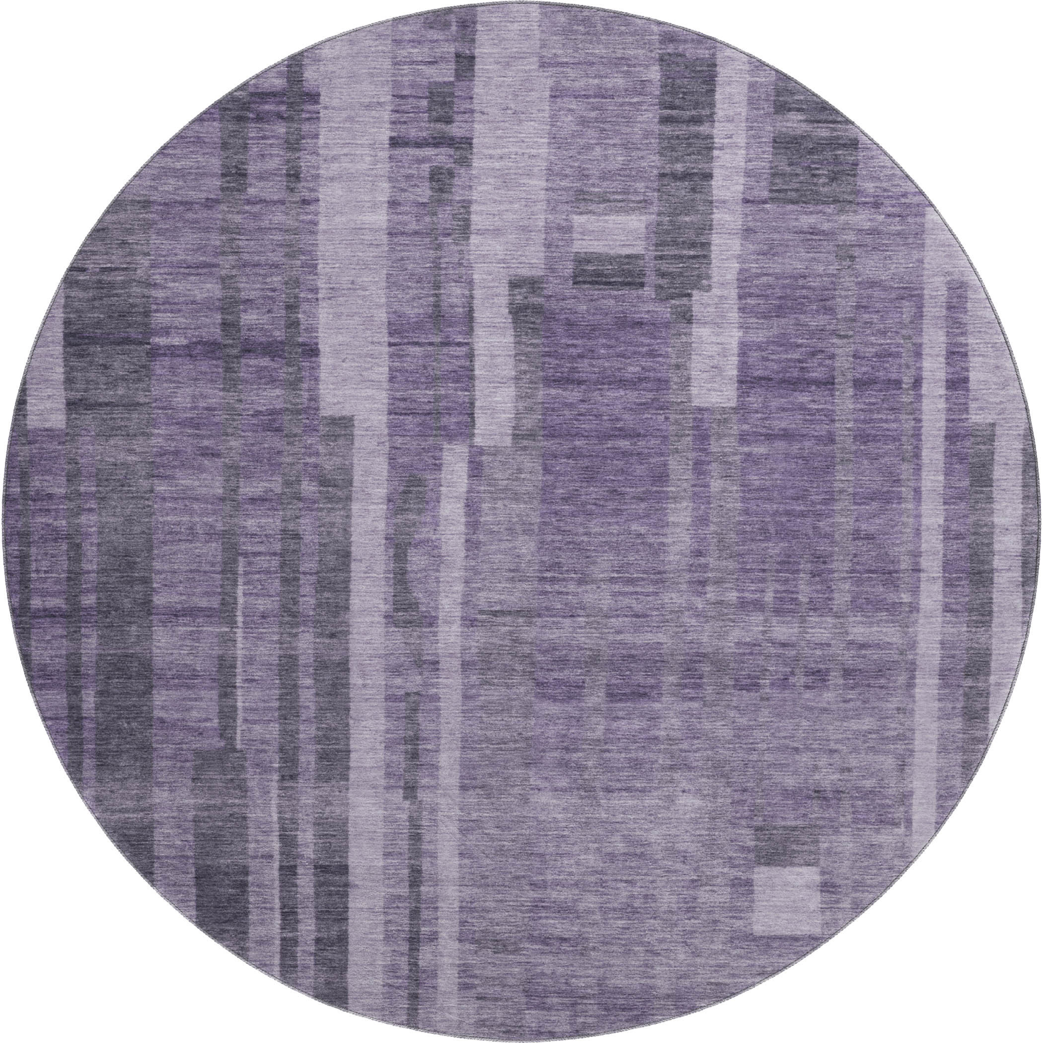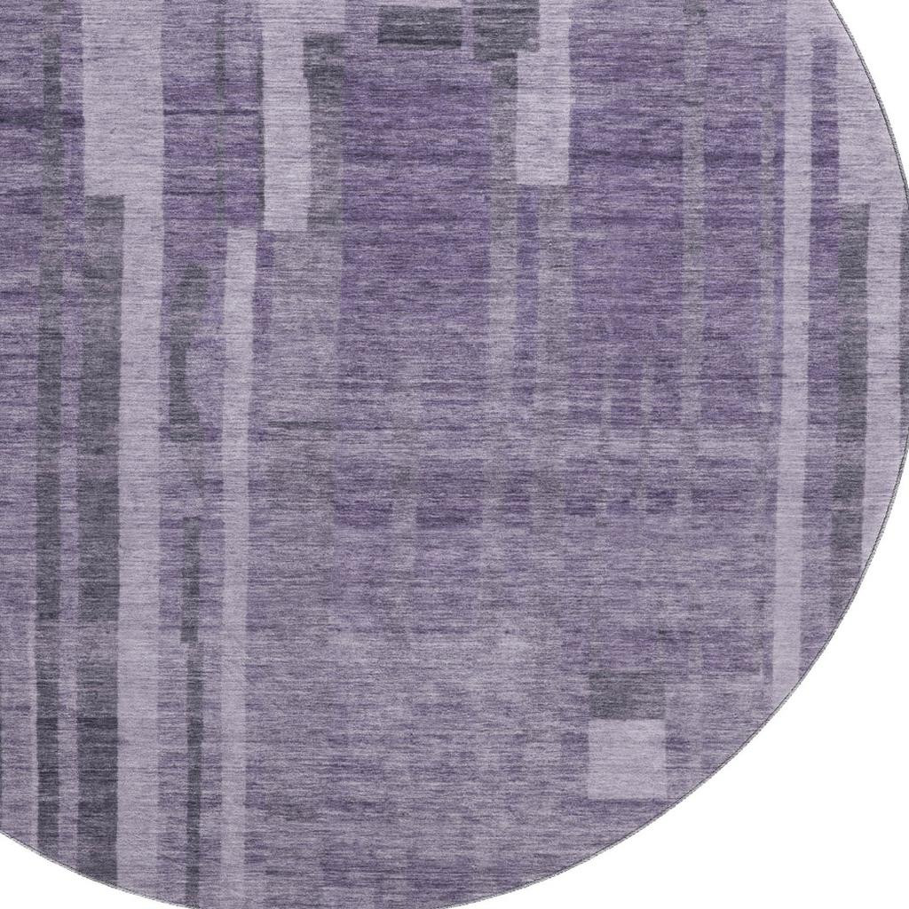 This 8-foot purple and lilac striped washable round rug with uv protection, is a great way to add warmth to a room. Ideal for spaces with kids and pets, this rug is stain resistant to help repel dirt and spilled liquids. Built to last, this rug crafted from polyester fibers is known for its durability and long lasting appeal. Rugs are a great way to showcase your style, hide imperfections, warm your home and reduce noise. This larger sized, transitional styled rug is ready to create a focal point or statement piece in your room. 96.00-inch h x 96.00-inch w x 0.39-inch d.