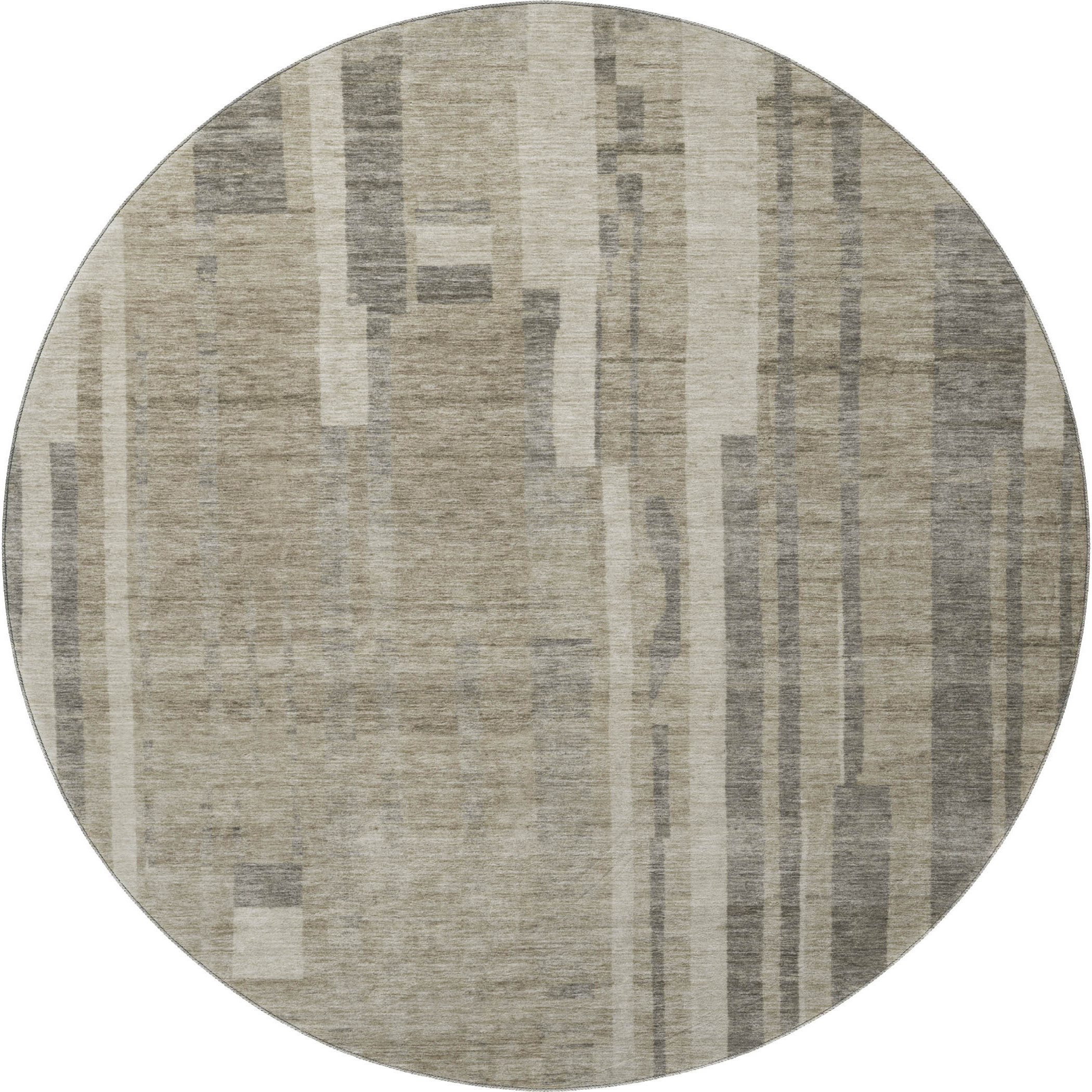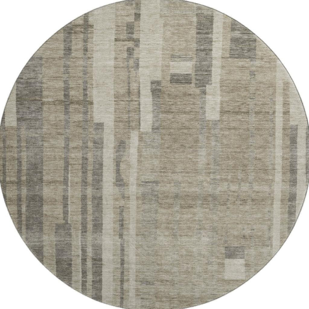 Set an inviting tone in your space with this 8-foot taupe and beige striped washable round rug with uv protection. Ideal for spaces with kids and pets, this rug is stain resistant to help repel dirt and spilled liquids. Built to last, this rug crafted from polyester fibers is known for its durability and long lasting appeal. Rugs are a great way to showcase your style, hide imperfections, warm your home and reduce noise. This larger sized, transitional styled rug is ready to create a focal point or statement piece in your room. 96.00-inch h x 96.00-inch w x 0.39-inch d.