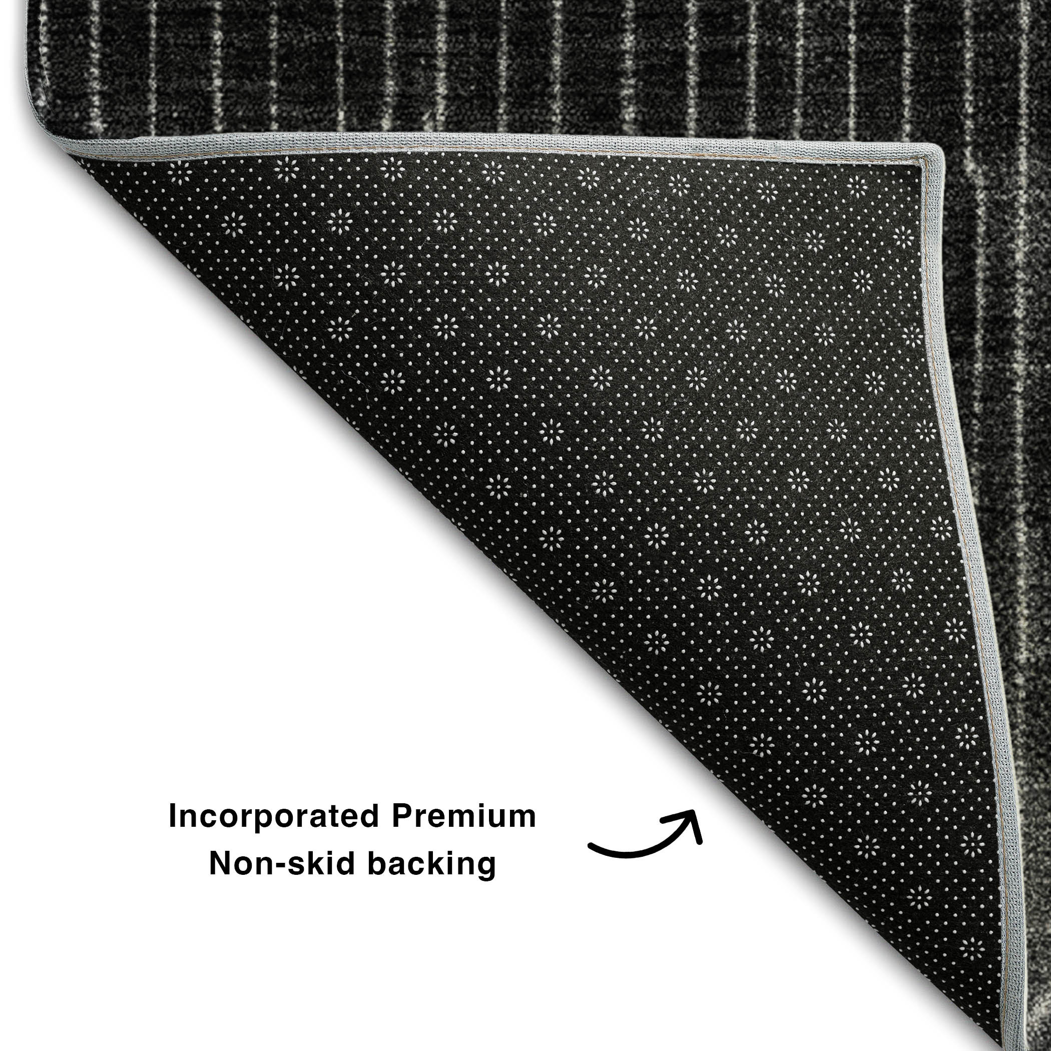Add some artistry to your room with this 3-foot x 5-foot black silver and gray ombre washable area rug with uv protection. Ideal for spaces with kids and pets, this rug is stain resistant to help repel dirt and spilled liquids. Built to last, this rug crafted from polyester fibers is known for its durability and long lasting appeal. Rugs are a great way to showcase your style, hide imperfections, warm your home and reduce noise. This smaller sized, transitional styled rug is just what you need for your walkway, bedside, in front of door, cabinet, refrigerator, or chair. 36.00-inch h x 60.00-inch w x 0.39-inch d.