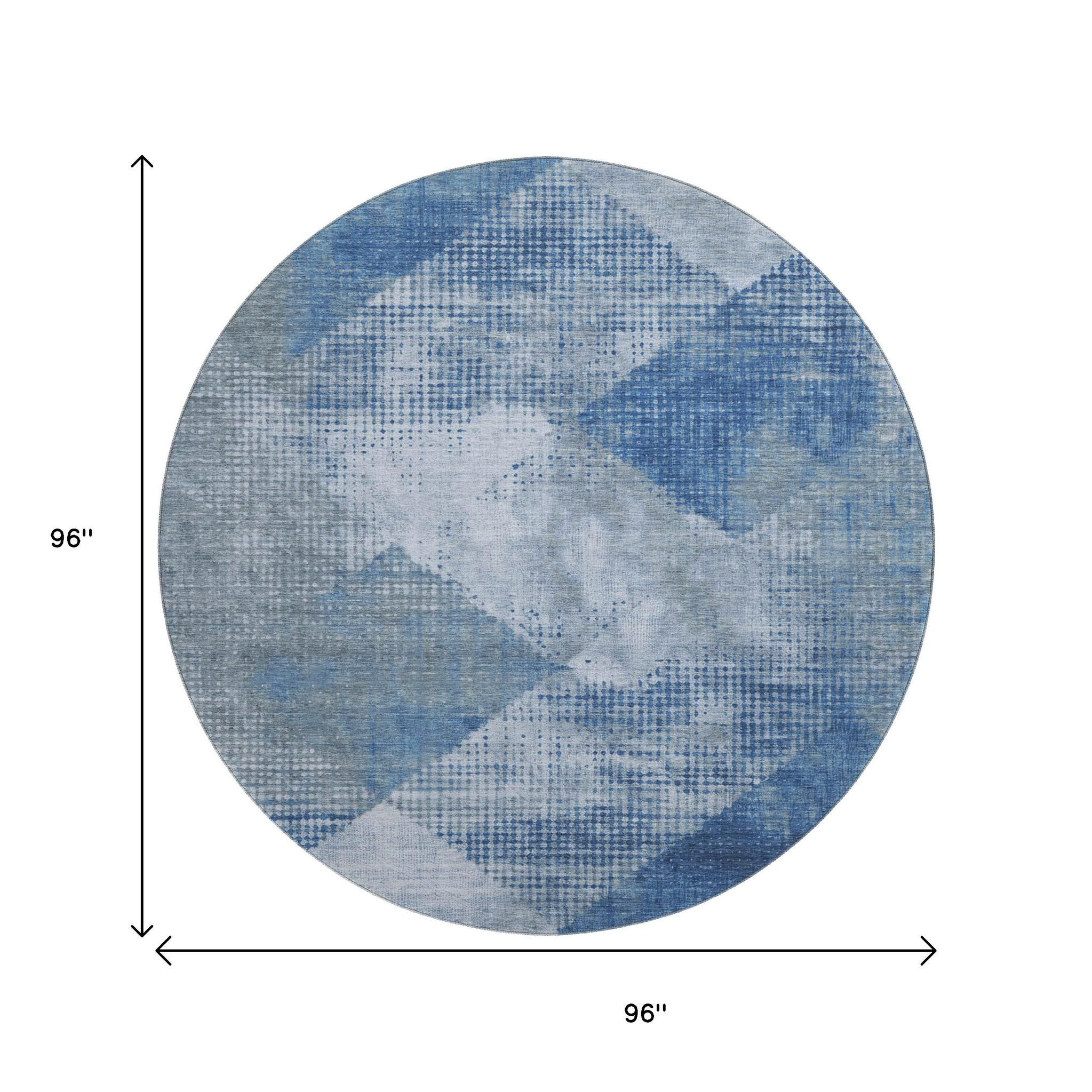 Set an inviting tone in your space with this 8-foot blue gray and silver diamond washable round rug with uv protection. Ideal for spaces with kids and pets, this rug is stain resistant to help repel dirt and spilled liquids. Built to last, this rug crafted from polyester fibers is known for its durability and long lasting appeal. Rugs are a great way to showcase your style, hide imperfections, warm your home and reduce noise. This larger sized, transitional styled rug is ready to create a focal point or statement piece in your room. 96.00-inch h x 96.00-inch w x 0.39-inch d.