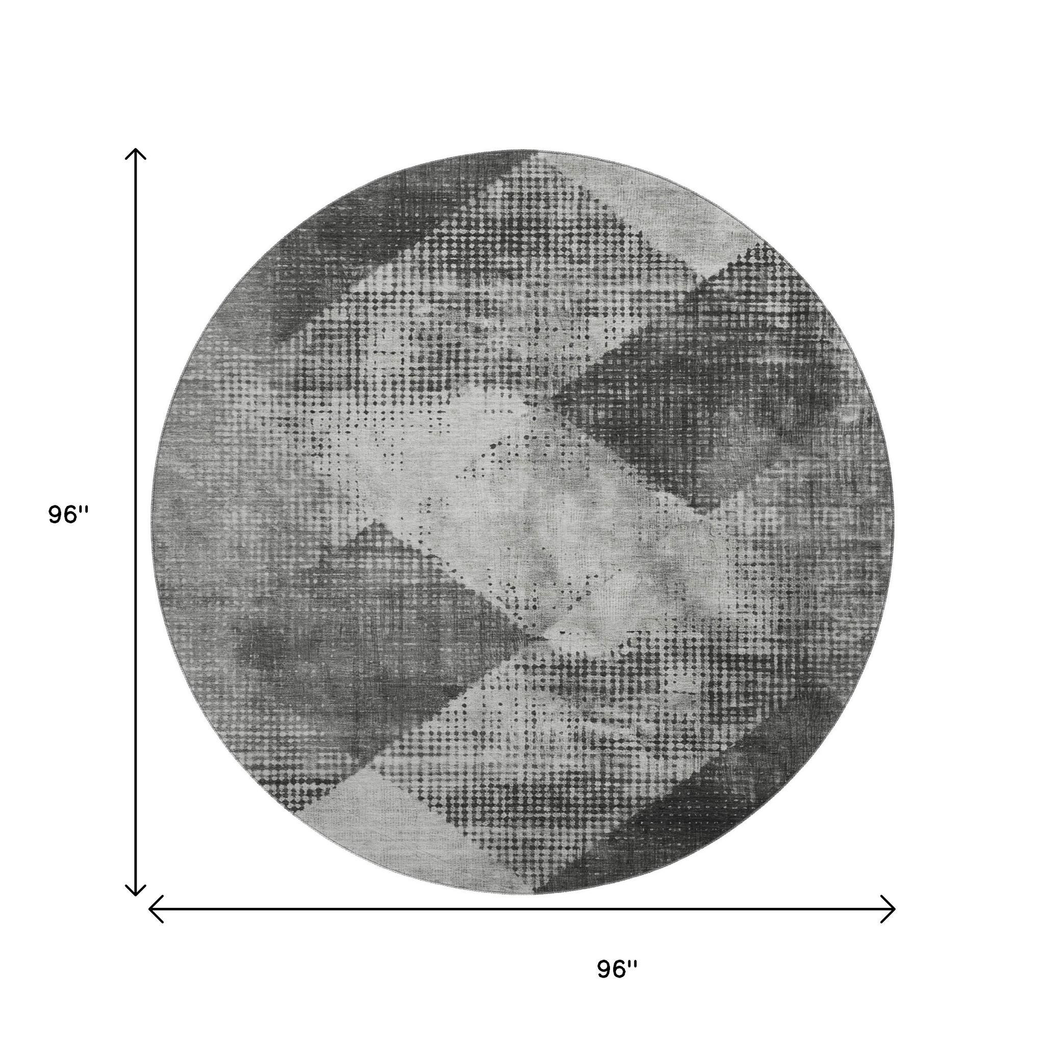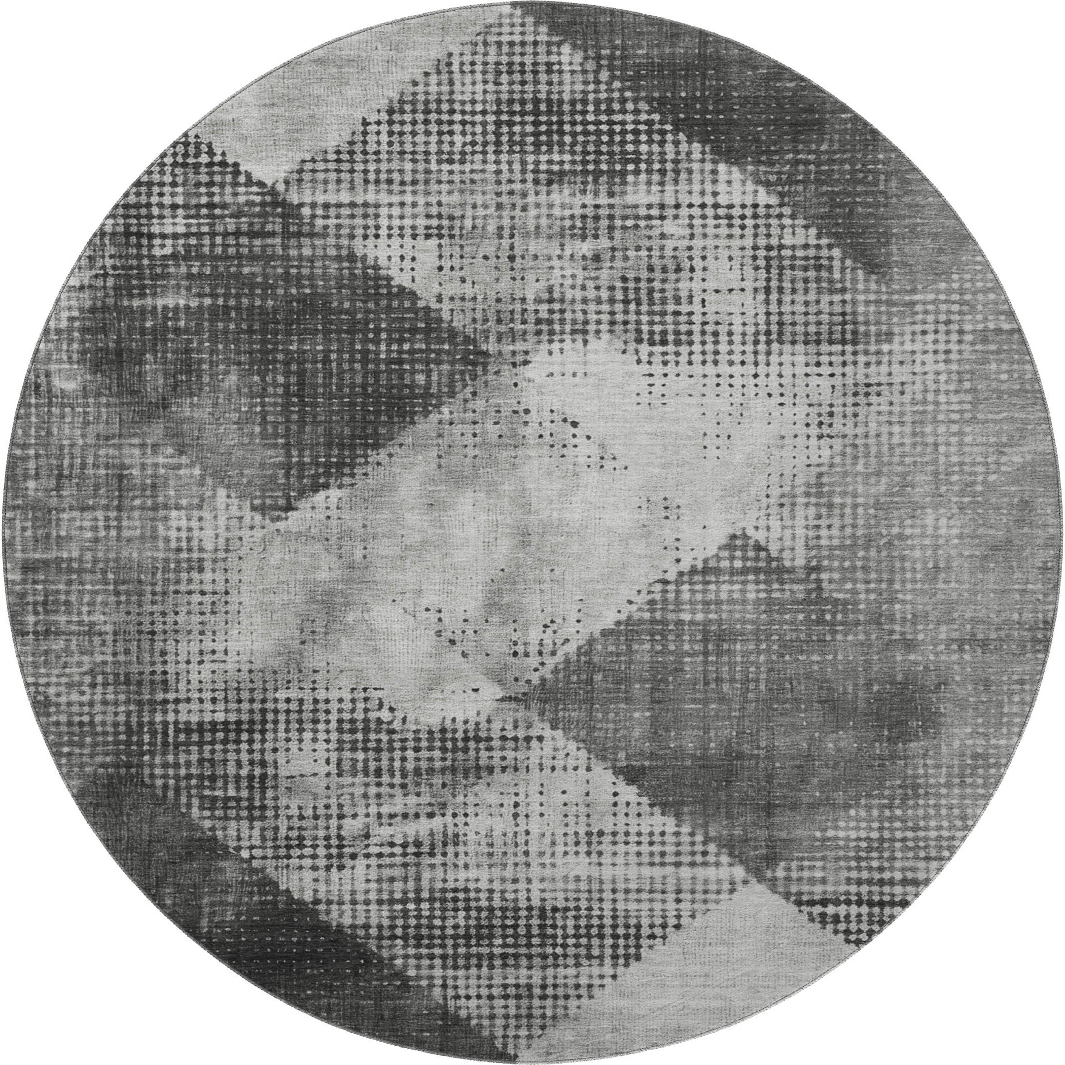 Add great coloration and comfortable texture to your space with this 8-foot gray and silver diamond washable round rug with uv protection. Ideal for spaces with kids and pets, this rug is stain resistant to help repel dirt and spilled liquids. Built to last, this rug crafted from polyester fibers is known for its durability and long lasting appeal. Rugs are a great way to showcase your style, hide imperfections, warm your home and reduce noise. This larger sized, transitional styled rug is ready to create a focal point or statement piece in your room. 96.00-inch h x 96.00-inch w x 0.39-inch d.