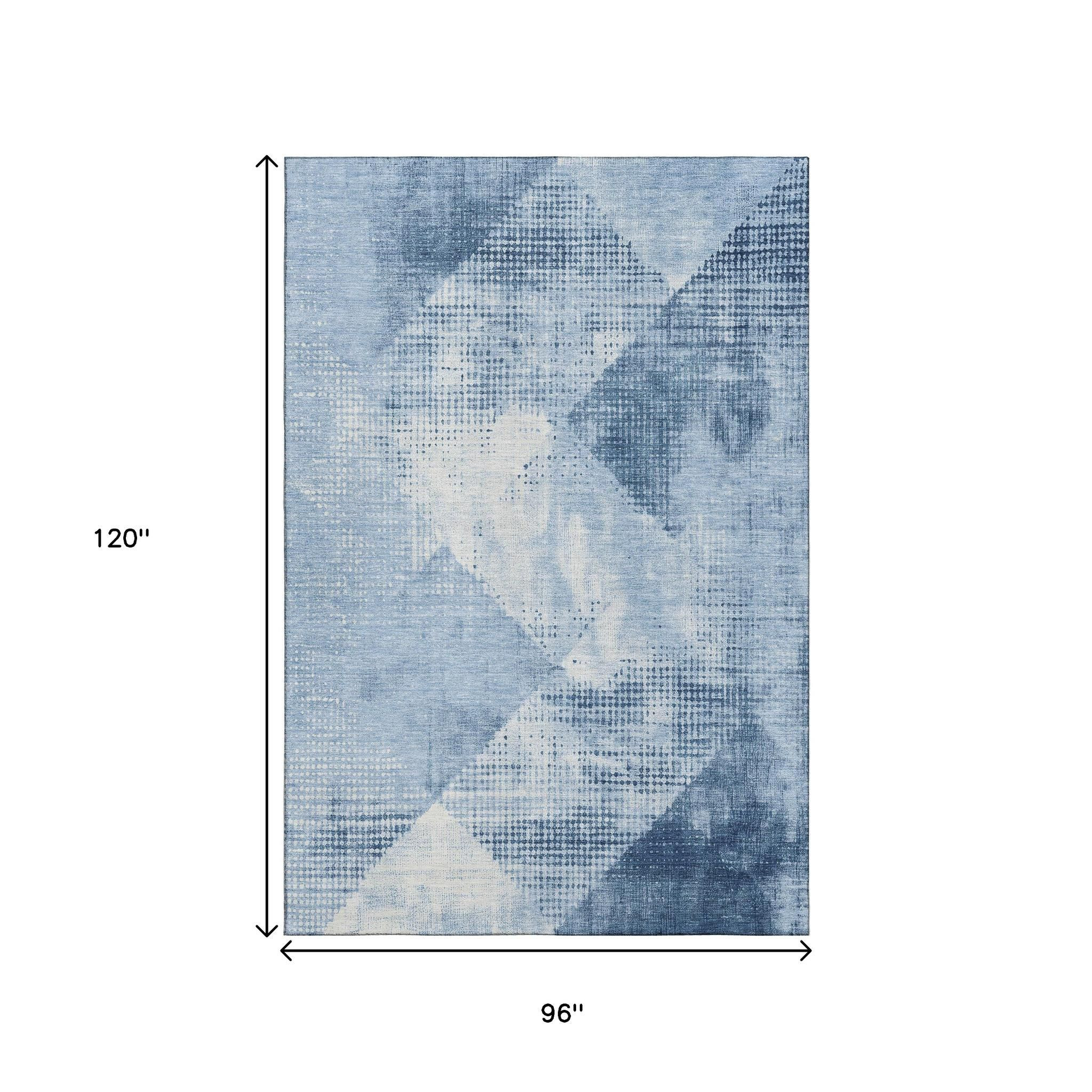 Add great coloration and comfortable texture to your space with this 8-foot x 10-foot sky blue denim blue and ivory diamond washable area rug with uv protection. Ideal for spaces with kids and pets, this rug is stain resistant to help repel dirt and spilled liquids. Built to last, this rug crafted from polyester fibers is known for its durability and long lasting appeal. Rugs are a great way to showcase your style, hide imperfections, warm your home and reduce noise. This larger sized, transitional styled rug is ready to create a focal point or statement piece in your room. 96.00-inch h x 120.00-inch w x 0.39-inch d.