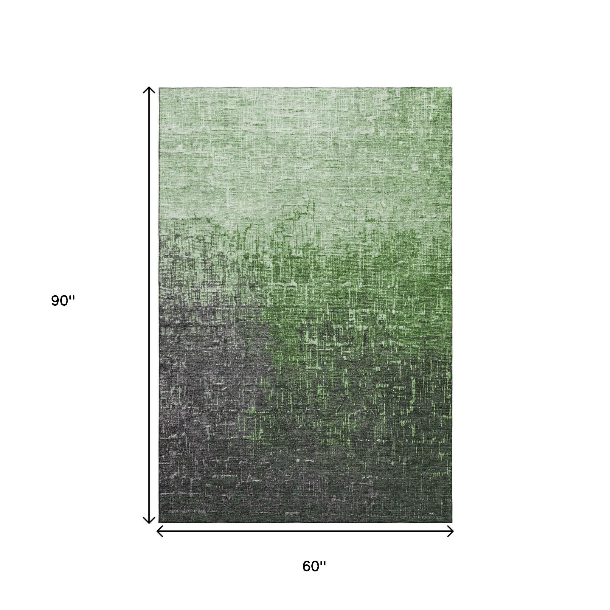 Add great coloration and comfortable texture to your space with this 5-foot x 8-foot green gray and charcoal ombre washable area rug with uv protection. Ideal for spaces with kids and pets, this rug is stain resistant to help repel dirt and spilled liquids. Built to last, this rug crafted from polyester fibers is known for its durability and long lasting appeal. Rugs are a great way to showcase your style, hide imperfections, warm your home and reduce noise. This larger sized, transitional styled rug is ready to create a focal point or statement piece in your room. 60.00-inch h x 90.00-inch w x 0.39-inch d.