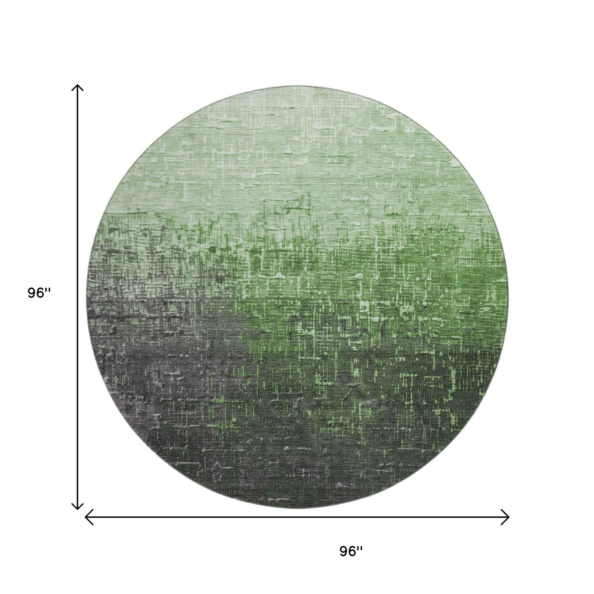 Add great coloration and comfortable texture to your space with this 8-foot green gray and charcoal ombre washable round rug with uv protection. Ideal for spaces with kids and pets, this rug is stain resistant to help repel dirt and spilled liquids. Built to last, this rug crafted from polyester fibers is known for its durability and long lasting appeal. Rugs are a great way to showcase your style, hide imperfections, warm your home and reduce noise. This larger sized, transitional styled rug is ready to create a focal point or statement piece in your room. 96.00-inch h x 96.00-inch w x 0.39-inch d.