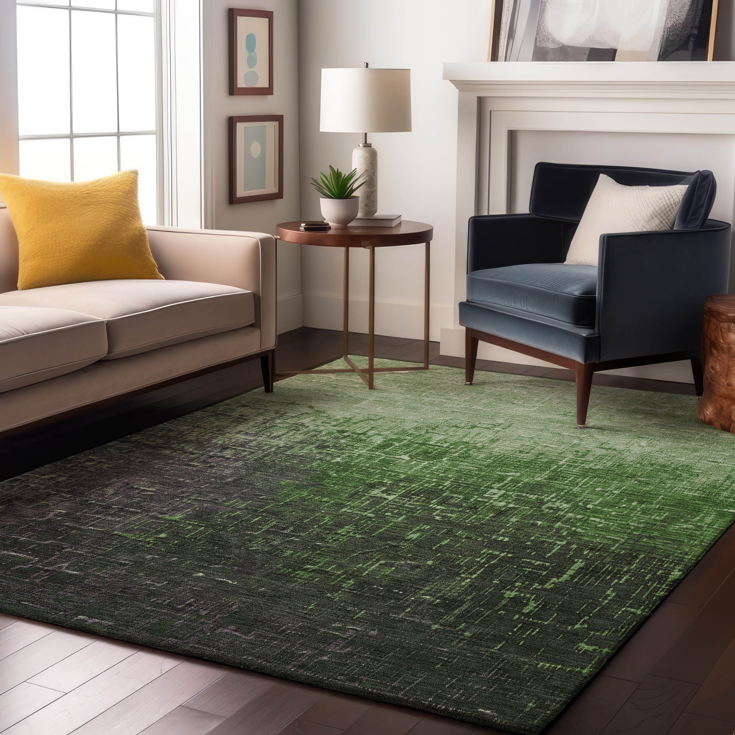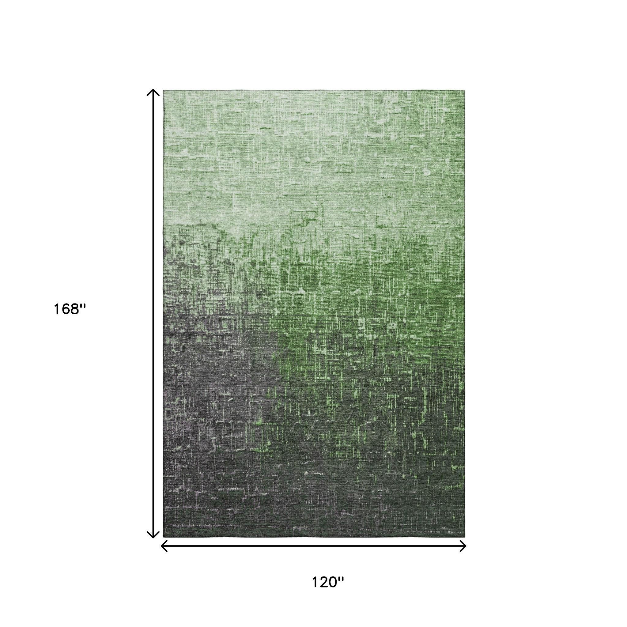 Add some artistry to your room with this 10-foot x 14-foot green gray and charcoal ombre washable area rug with uv protection. Ideal for spaces with kids and pets, this rug is stain resistant to help repel dirt and spilled liquids. Built to last, this rug crafted from polyester fibers is known for its durability and long lasting appeal. Rugs are a great way to showcase your style, hide imperfections, warm your home and reduce noise. This larger sized, transitional styled rug is ready to create a focal point or statement piece in your room. 120.00-inch h x 168.00-inch w x 0.39-inch d.