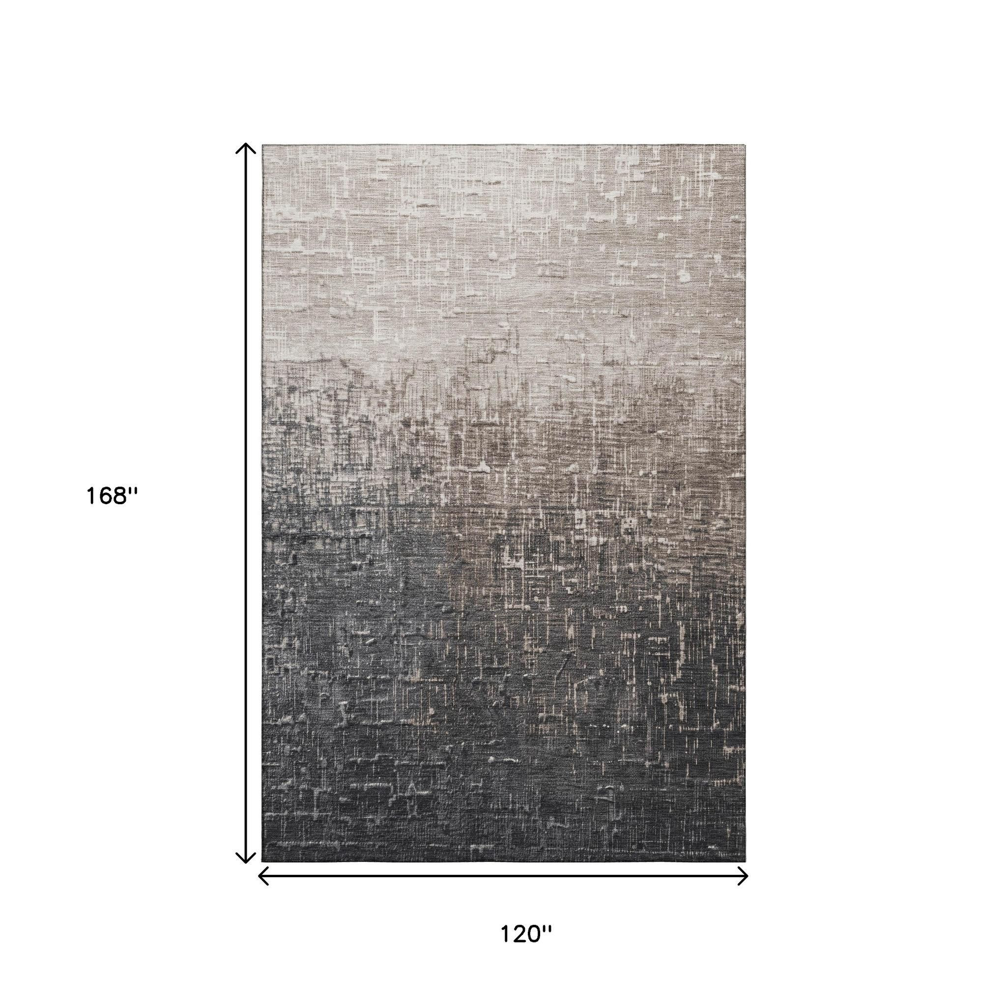 Set an inviting tone in your space with this 10-foot x 14-foot khaki gray and charcoal ombre washable area rug with uv protection. Ideal for spaces with kids and pets, this rug is stain resistant to help repel dirt and spilled liquids. Built to last, this rug crafted from polyester fibers is known for its durability and long lasting appeal. Rugs are a great way to showcase your style, hide imperfections, warm your home and reduce noise. This larger sized, transitional styled rug is ready to create a focal point or statement piece in your room. 120.00-inch h x 168.00-inch w x 0.39-inch d.