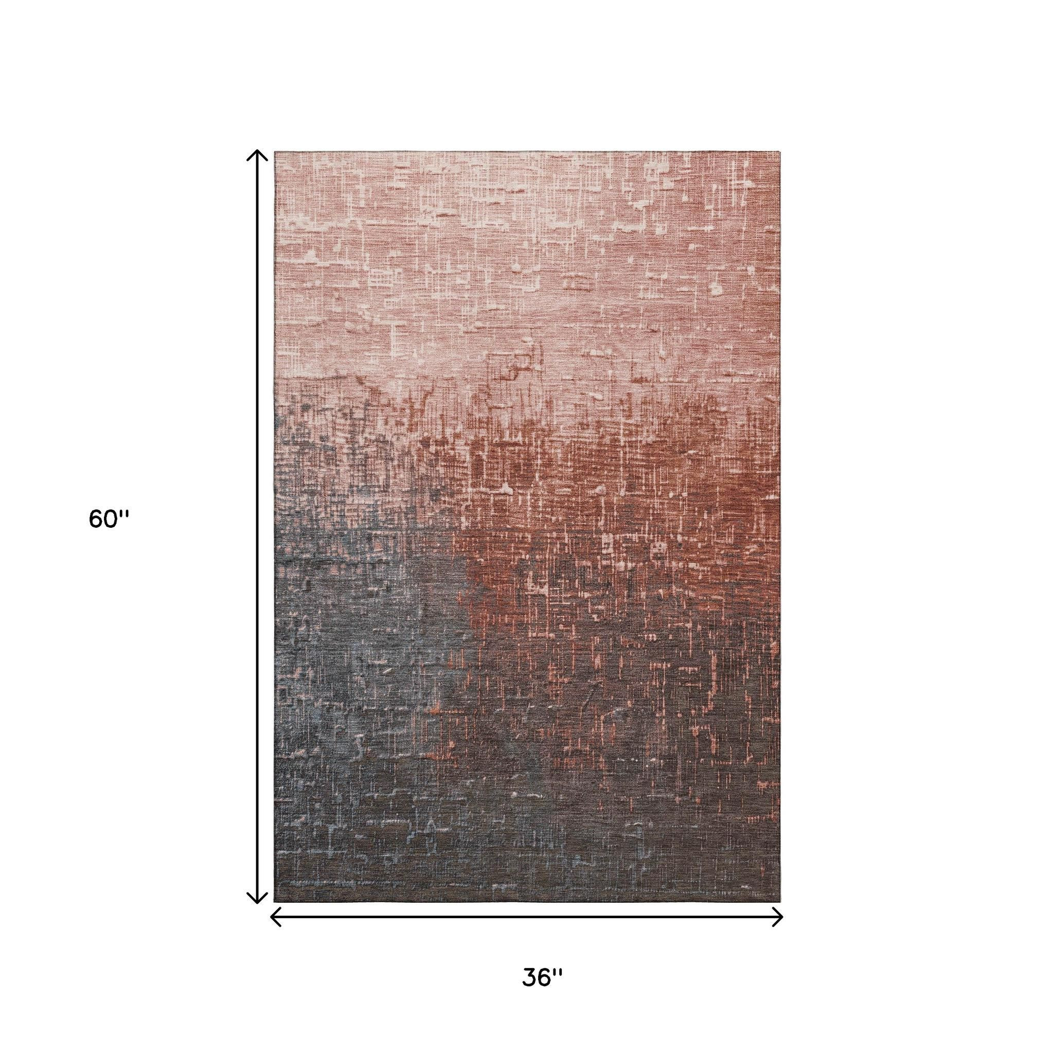 Add some artistry to your room with this 3-foot x 5-foot rust gray and charcoal ombre washable area rug with uv protection. Ideal for spaces with kids and pets, this rug is stain resistant to help repel dirt and spilled liquids. Built to last, this rug crafted from polyester fibers is known for its durability and long lasting appeal. Rugs are a great way to showcase your style, hide imperfections, warm your home and reduce noise. This smaller sized, transitional styled rug is just what you need for your walkway, bedside, in front of door, cabinet, refrigerator, or chair. 36.00-inch h x 60.00-inch w x 0.39-inch d.