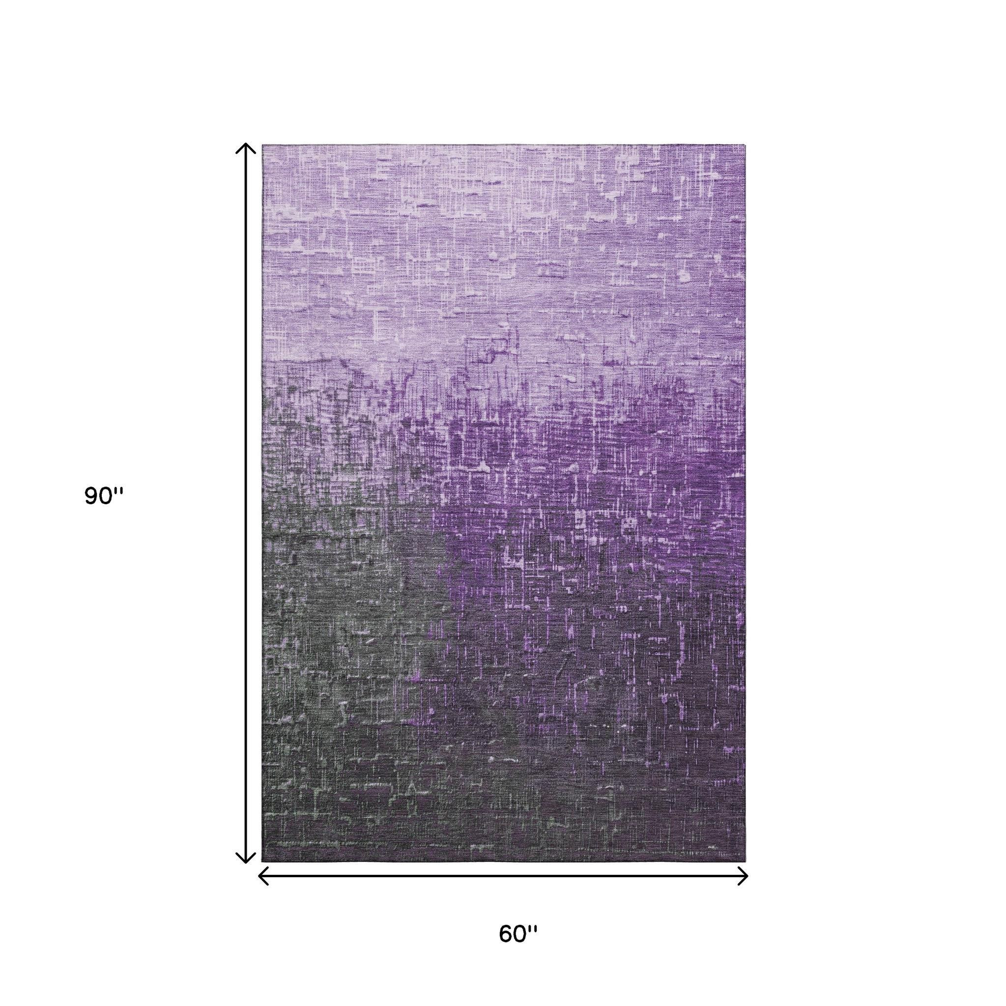 Add some artistry to your room with this 5-foot x 8-foot purple gray and charcoal ombre washable area rug with uv protection. Ideal for spaces with kids and pets, this rug is stain resistant to help repel dirt and spilled liquids. Built to last, this rug crafted from polyester fibers is known for its durability and long lasting appeal. Rugs are a great way to showcase your style, hide imperfections, warm your home and reduce noise. This larger sized, transitional styled rug is ready to create a focal point or statement piece in your room. 60.00-inch h x 90.00-inch w x 0.39-inch d.