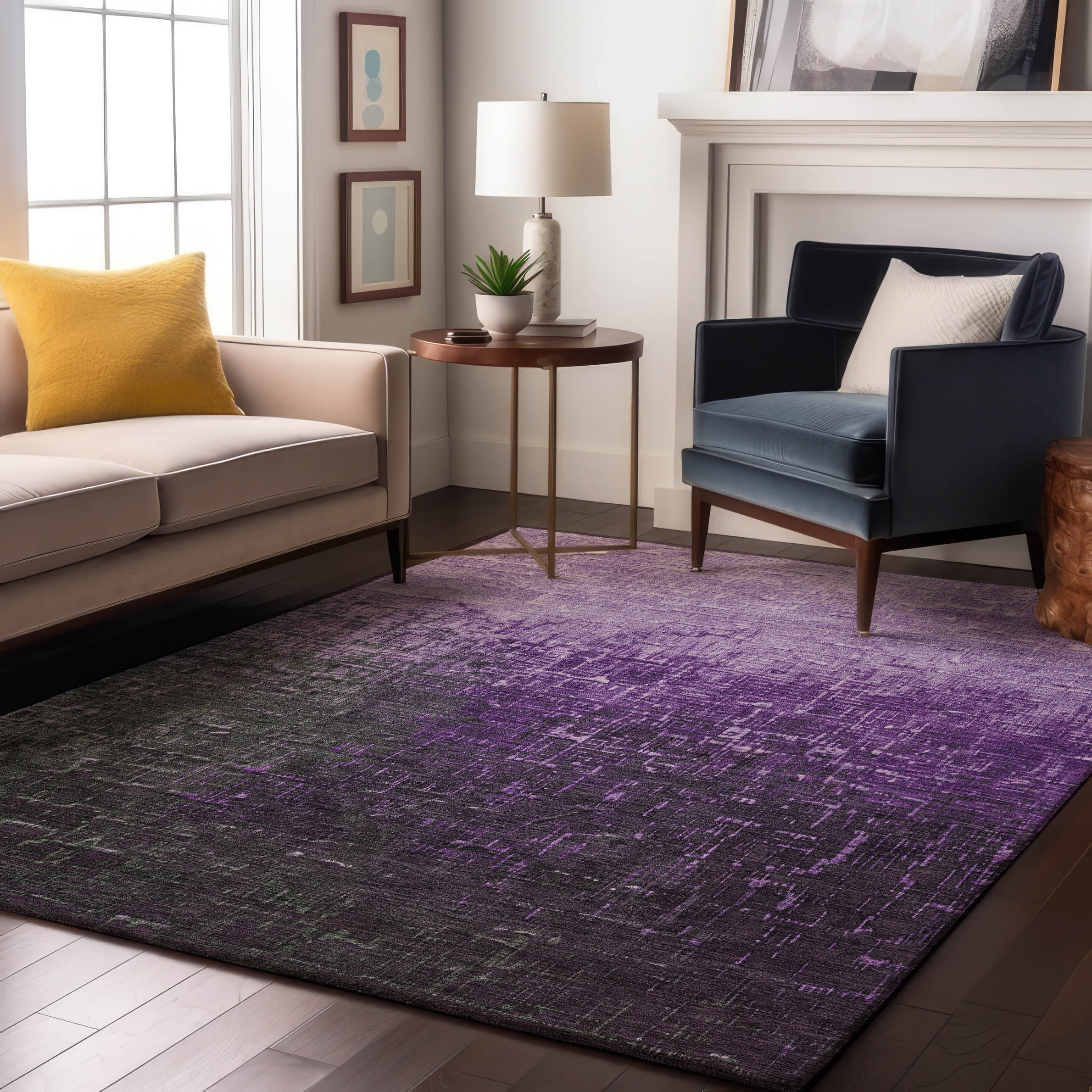 Set an inviting tone in your space with this 9-foot x 12-foot purple gray and charcoal ombre washable area rug with uv protection. Ideal for spaces with kids and pets, this rug is stain resistant to help repel dirt and spilled liquids. Built to last, this rug crafted from polyester fibers is known for its durability and long lasting appeal. Rugs are a great way to showcase your style, hide imperfections, warm your home and reduce noise. This larger sized, transitional styled rug is ready to create a focal point or statement piece in your room. 108.00-inch h x 144.00-inch w x 0.39-inch d.
