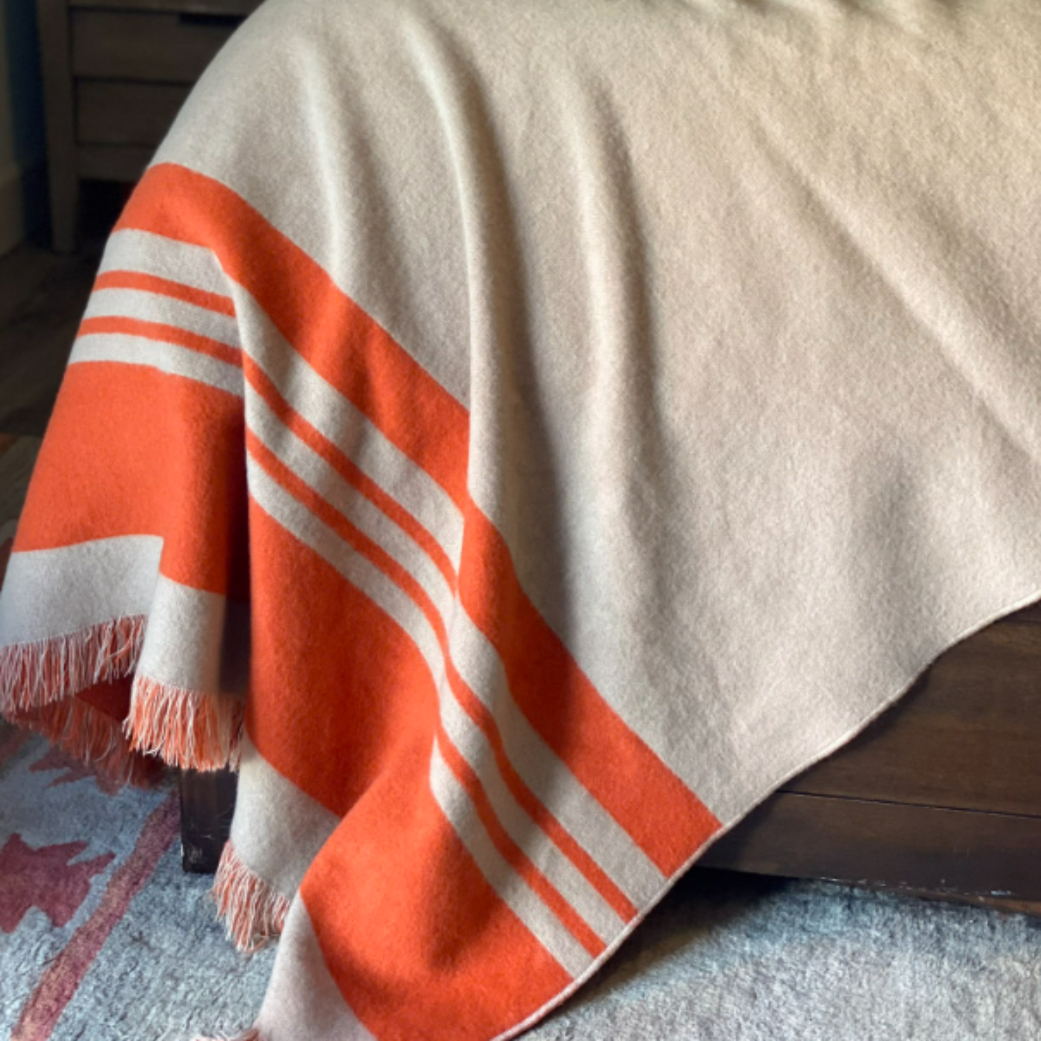 This welcoming 54-inch x 74-inch orange wool acrylic blend woven throw blanket is a must-have for every sofa, chaise, and bed. Hand woven by true artisans, this good looking throw will elevate its surroundings with its genuine and artisanal style. This woven throw offers sumptuous softness and texture that you'll cherish for years to come. Made from wool acrylic blend this blanket will make a great addition to any room it's added to. Add extra texture to your decor and turn your room into an inviting space. Perfect for your favorite chair, bed or lounging on the couch, this blanket helps bring a warm and fashionable flair to your space. 74.00-inch h x 54.00-inch w x 1.00-inch d.