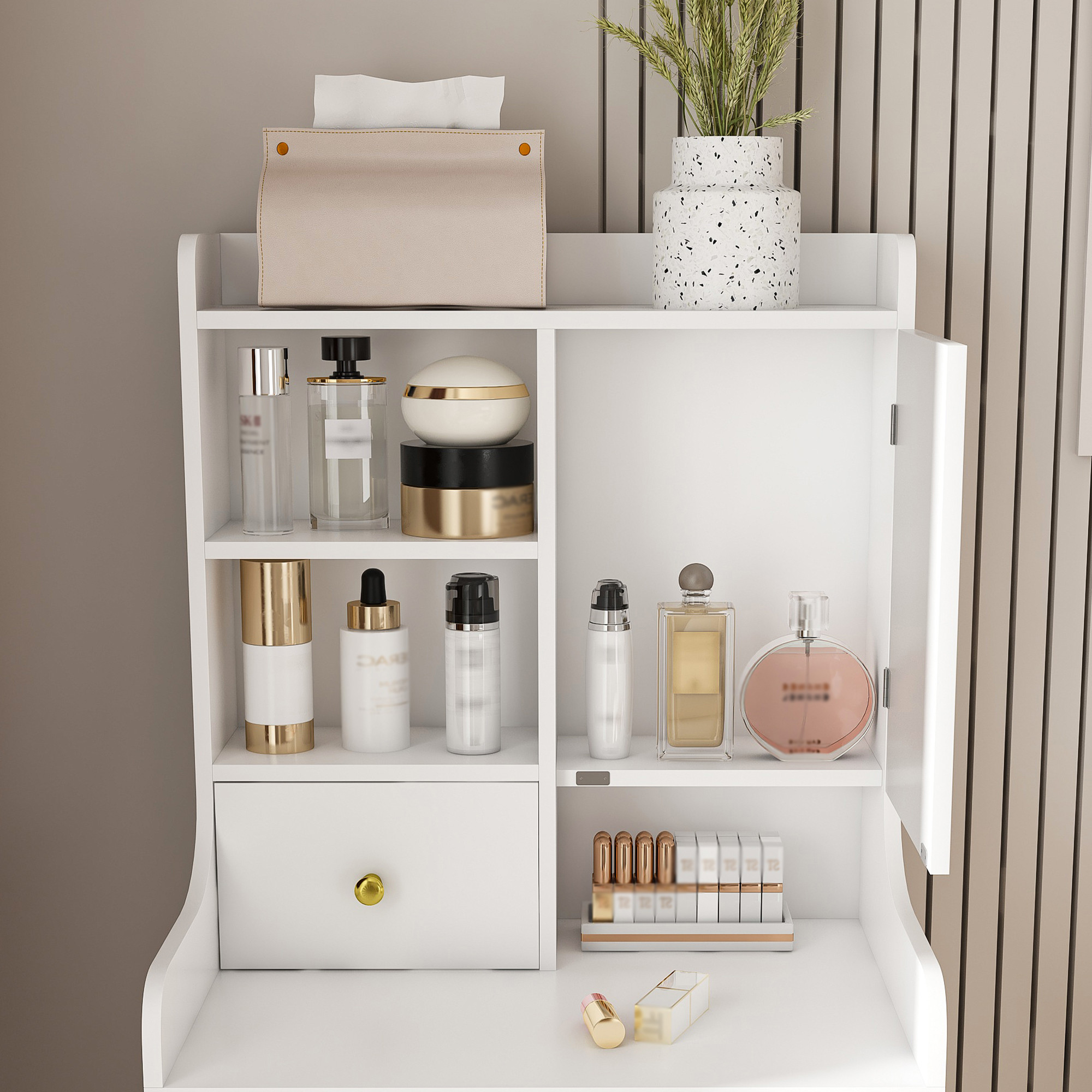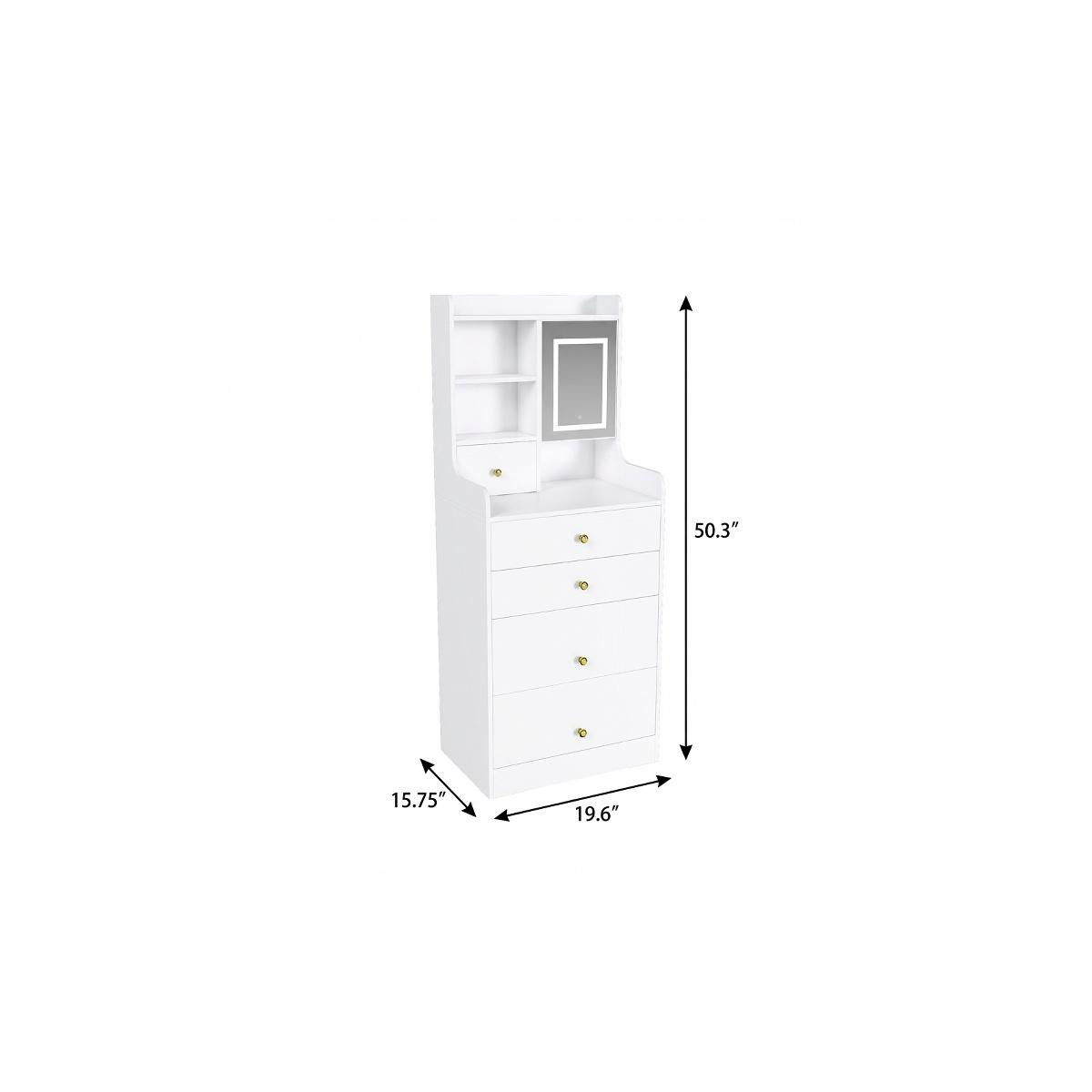Say goodbye to cluttered counters and hello to a streamlined beauty routine with our 20-inch white wood mirrored five drawer vanity table and lights. Not only does it add reflection and lustrous beauty to you bedroom or bathroom, as a bonus, this vanity table is also easy to clean. This table features a beautiful, manufactured wood base. Our vanity with included drawer space adds functionality along with a touch of elegance and sophistication to your space. Upgrade your beauty routine with our high-quality vanity table. Start enjoying a more efficient and stylish beauty routine with this fabulous vanity!. 50.30-inch h x 19.60-inch w x 15.75-inch d.