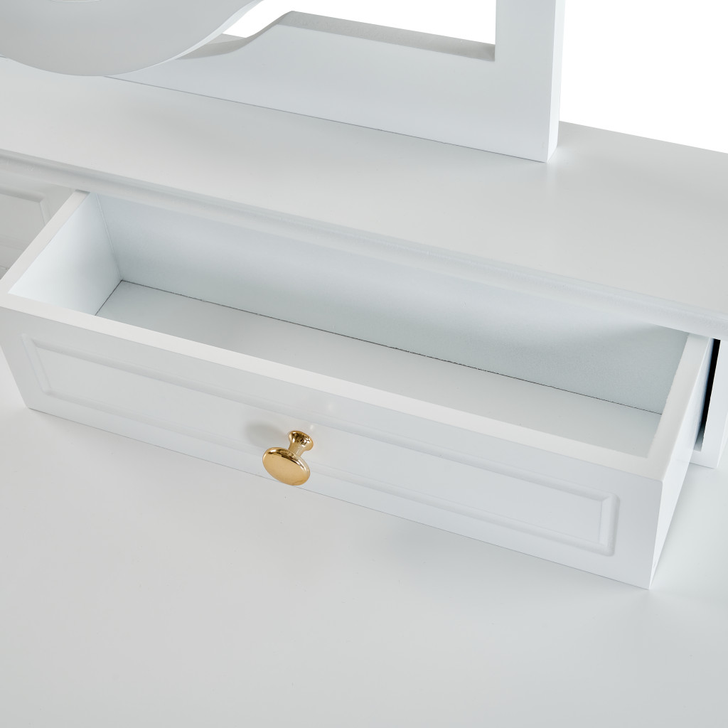 wood mirrored drawer vanity table, mirrored drawer vanity table, white wood mirrored drawer vanity, 36" white wood mirrored drawer, drawer vanity table |